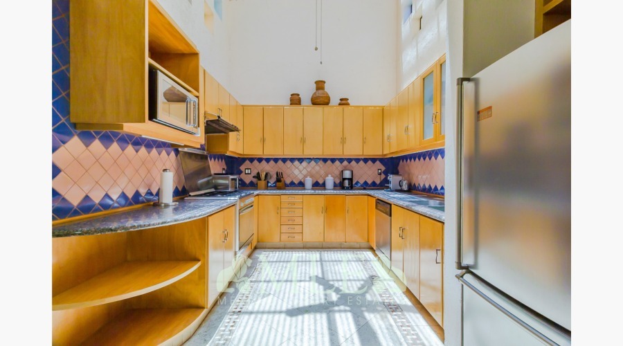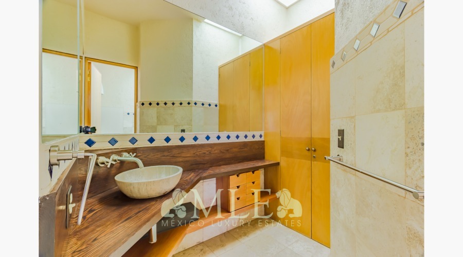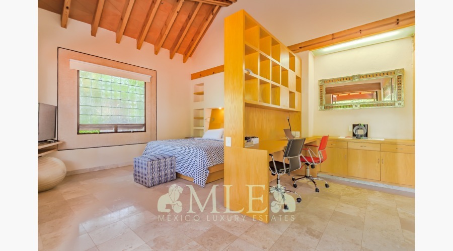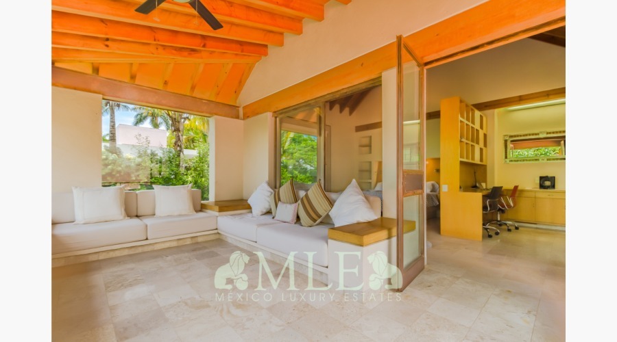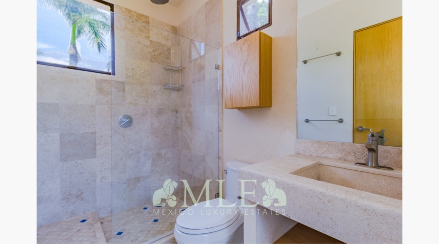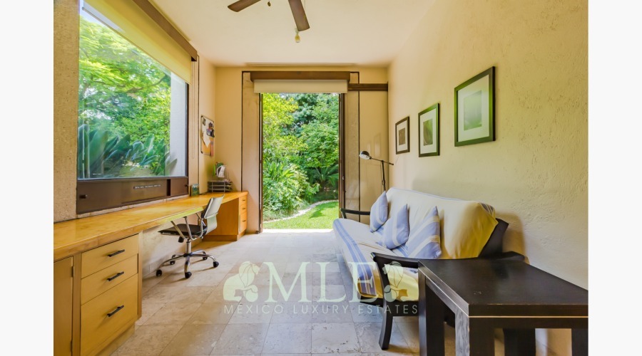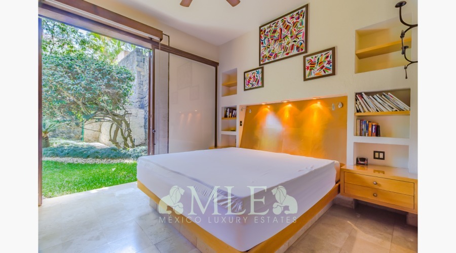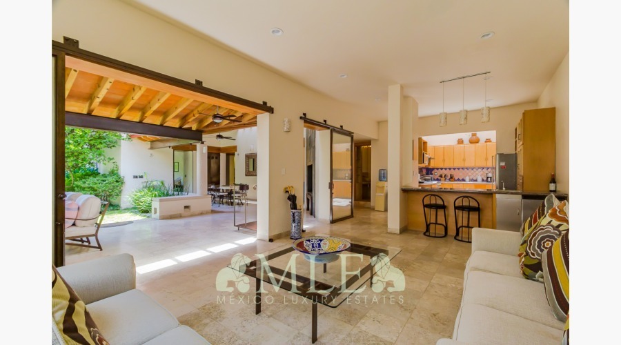 Casa Relajada cuenta con su propio jardín privado, además de ser parte de un exclusivo complejo de condominios con aún más amplios jardines, cancha de tenis, gran palapa y enorme piscina con calefacción a base de energía solar. Esta casa moderna mexicana se ve realzada por techos altos, tragaluces, acabados de calidad y generosos espacios habitables. La remodelación y anexo realizada, utiliza un tema cuadrado único en todo y hace una transición perfecta desde la casa del interior al exterior. Si quieres privacidad, pero te gusta la idea de una impresionante zona de jardín y piscina sin la responsabilidad de mantenerla.