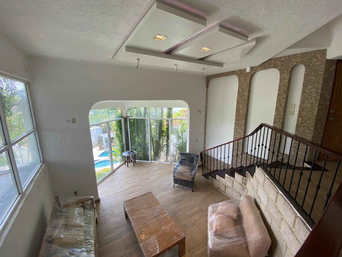 Casa ubicada en fraccionamiento con vigilancia y pozo de agua propio, la distribución de la áreas se da en diferentes niveles, a nivel de calle encontramos dos estacionamientos (uno de ellos esta techado) y una recamara con una patio ó terraza, su baño y closet y la recamara dos con baño closet, al bajar un nivel encontramos la zona de sala con chimenea, comedor, estudio equipado con un librero empotrado, cocina equipada y con alacena, una terraza con vista panorámica de la ciudad, patio de lavado techado y cuarto de servicio con baño completo; la recamara principal tiene una ubicación privilegiada por tener vista al valle de Cuernavaca ó al bosque la cual puedes disfrutar desde una una amplia terraza con un jacuzzi (sin equipamiento) ó del balcón, en su arquitectura podrás disfrutar su bóveda catalana, baño con vapor y vestidor.