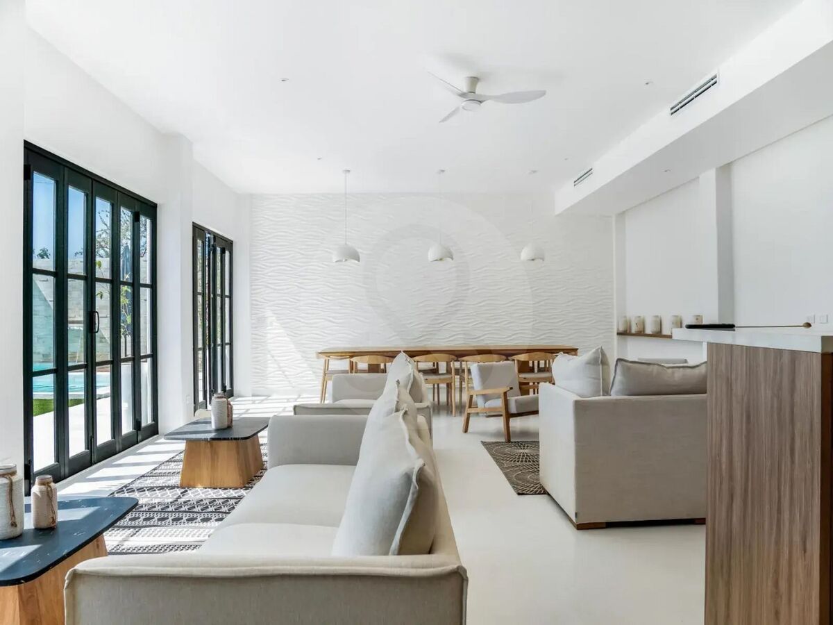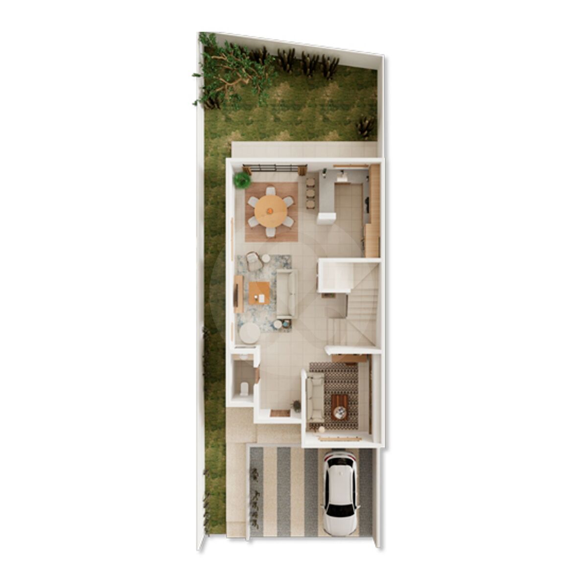 Construida en un terreno de construcción en dos niveles, esta villa ofrece espacios amplios y bien distribuidos: sala, comedor y cocina conectados entre sí; acceso a terraza; y recámara principal con baño en suite.