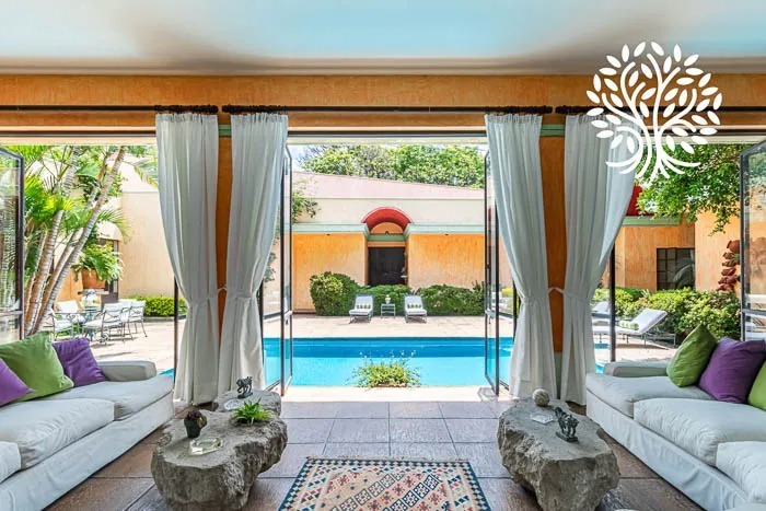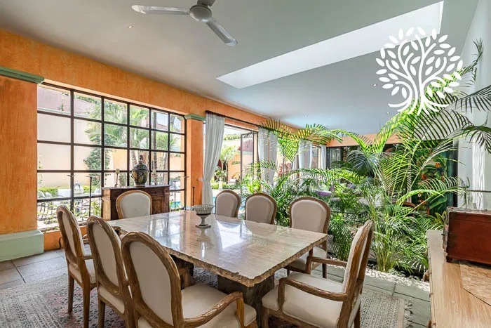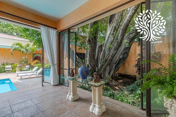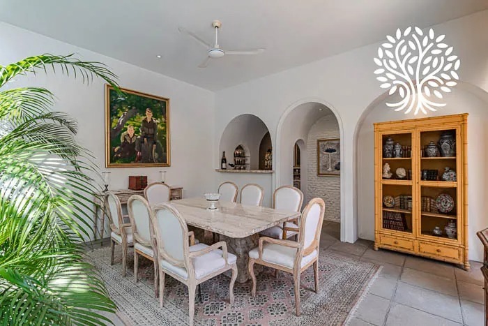 Casa Los Delfines, una residencia contemporánea mediterránea única, se encuentra en Av. Palmira. Esta joya estilo patio de un solo piso se presta para la vida al interior y al aire libre, redefiniendo lo que puede ser una casa. La gran sala de estar y el comedor irradian una sofisticación casual con techos altos, molduras atractivas, iluminación natural y enormes puertas de vidrio que permiten un flujo natural hacia el patio y la piscina. Las 3 habitaciones son espaciosas y la suite principal con una estancia encantadora, chimenea y jacuzzi bajo un tragaluz. La pintoresca cocina es la perfección colonial. La sutil paleta de colores del interior, bañada por una luz suave y las vibrantes paredes exteriores le dan personalidad a la elegante Casa los Delfines.