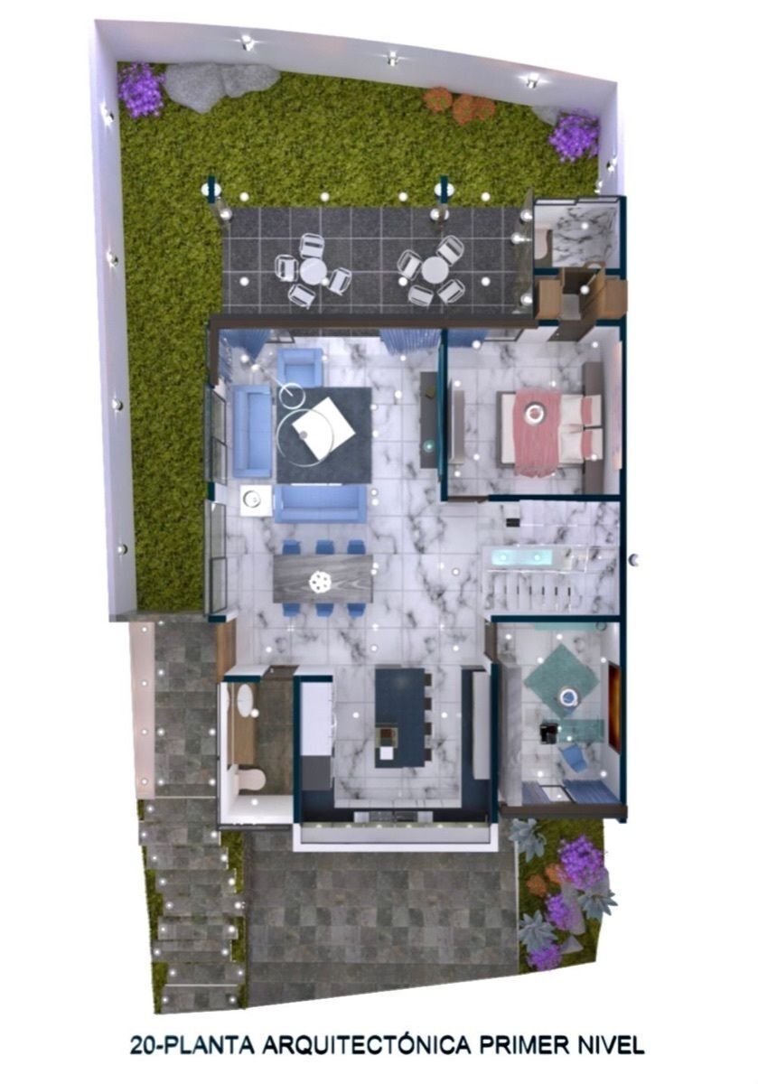 - Jardín lateral y posterior.