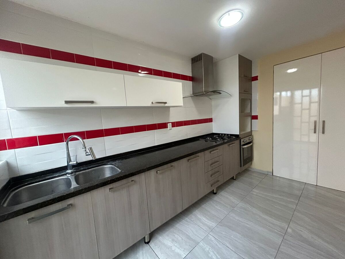 Cocina equipada con barra y amplios espacios de almacenamiento