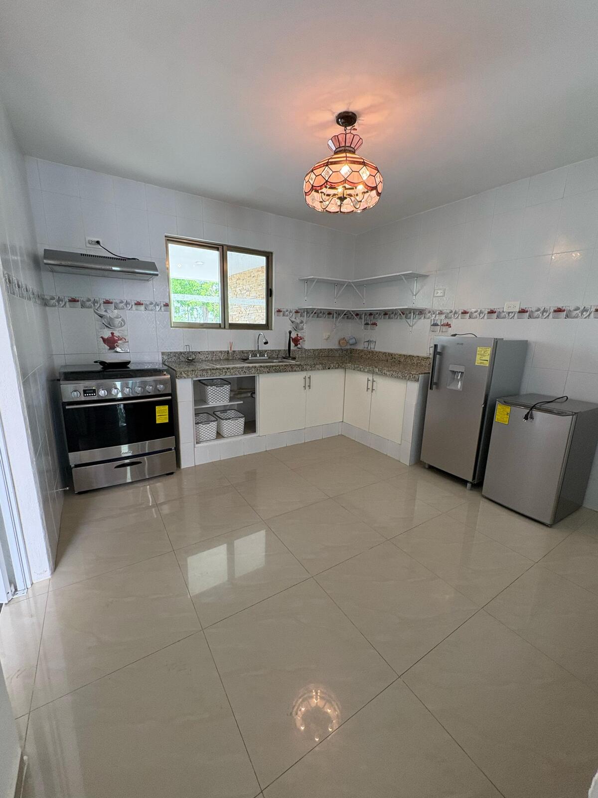 -Cocina con mesetas de granito y gavetas.