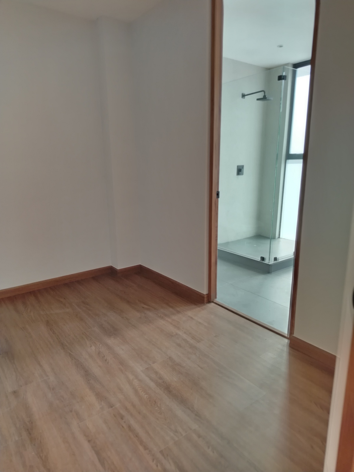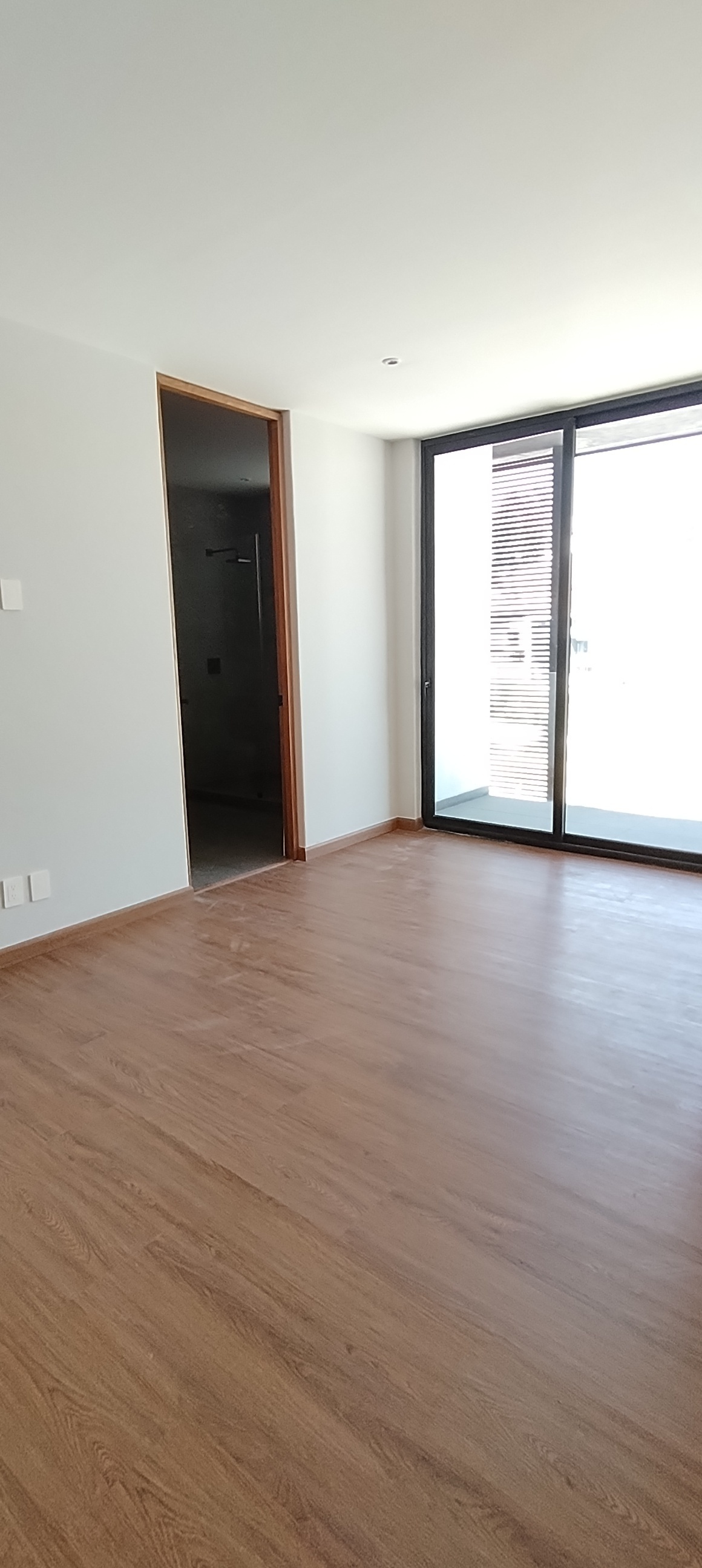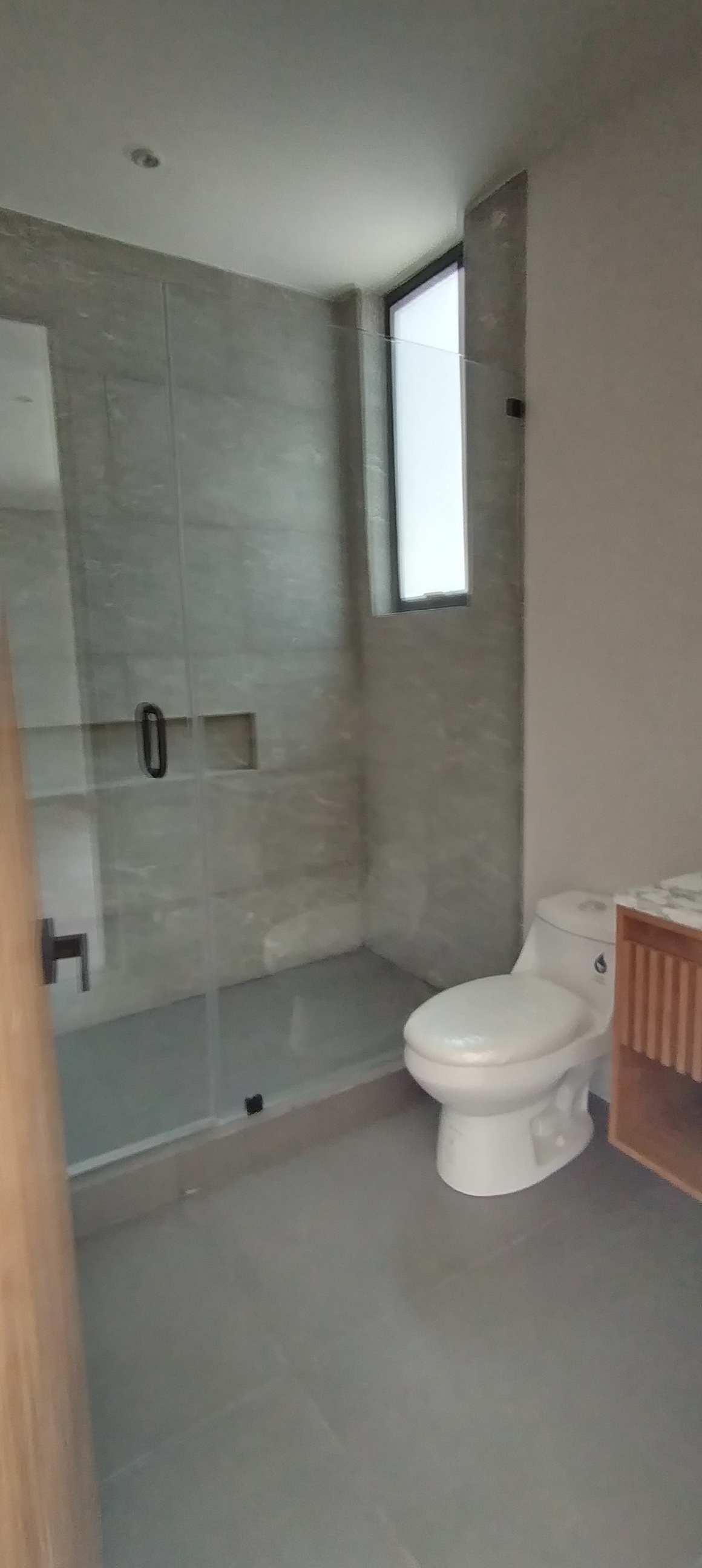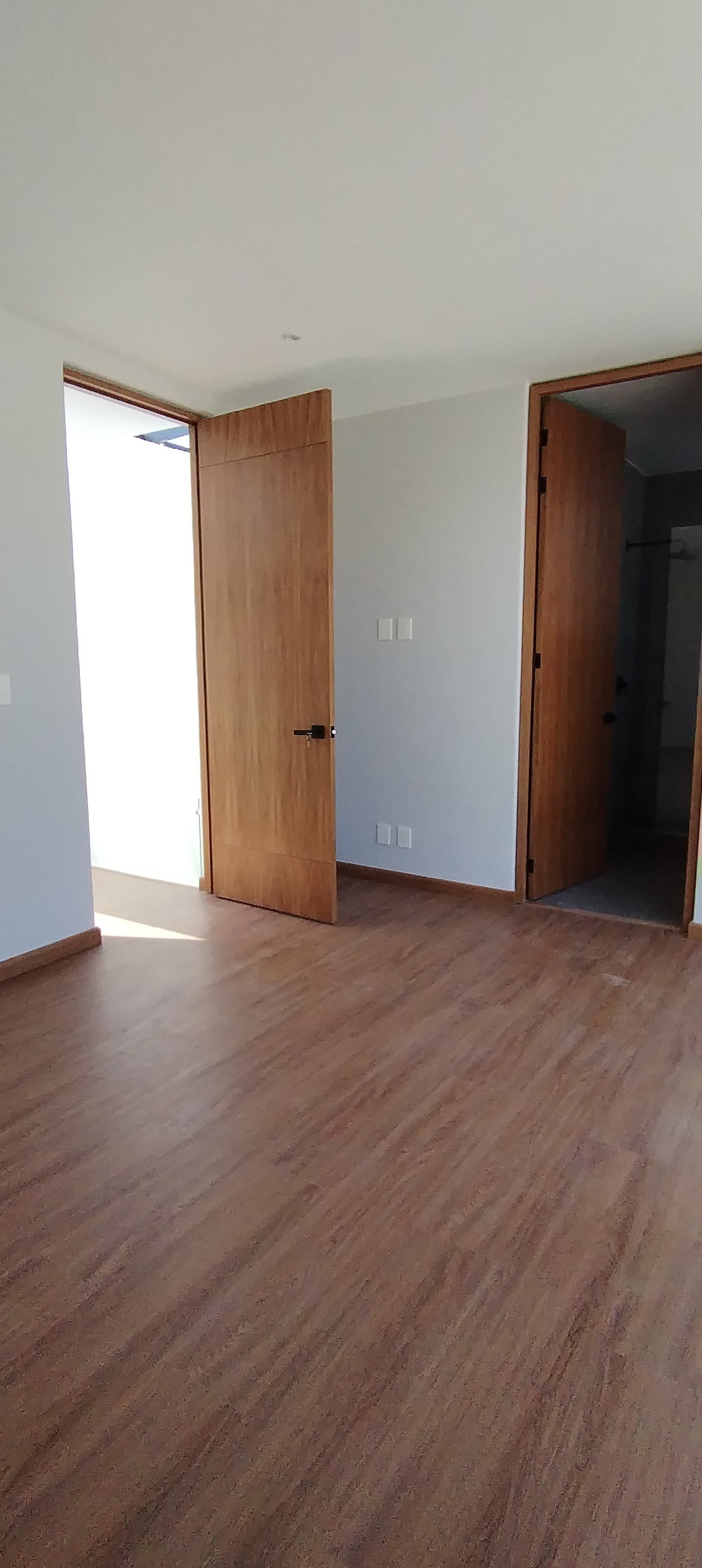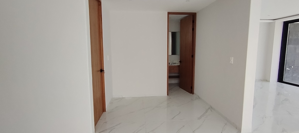 - 3 recámaras, cada una con baño privado y vestidor, ofreciendo confort y privacidad, sus materiales son en tono nogal con piso de ingeniería tipo nogal