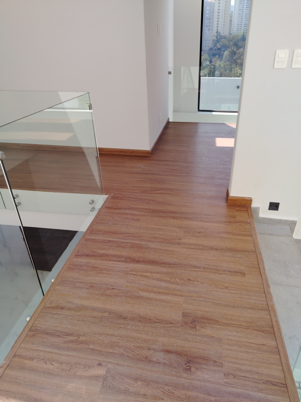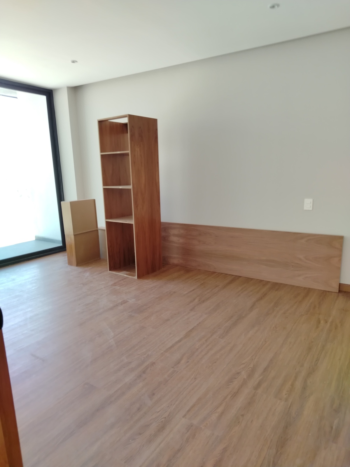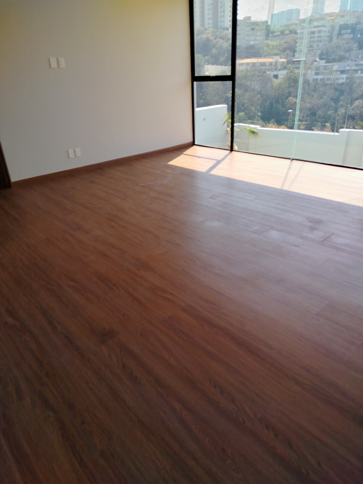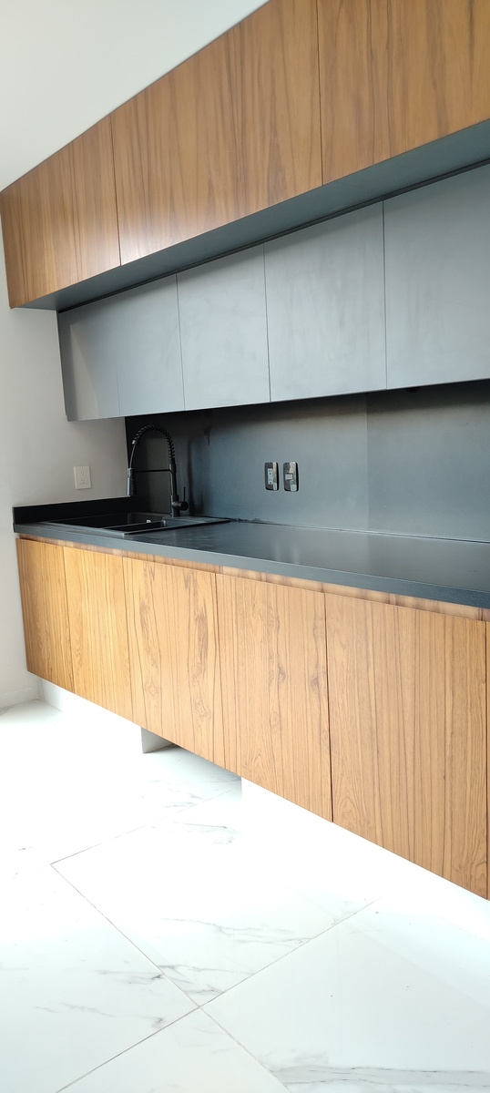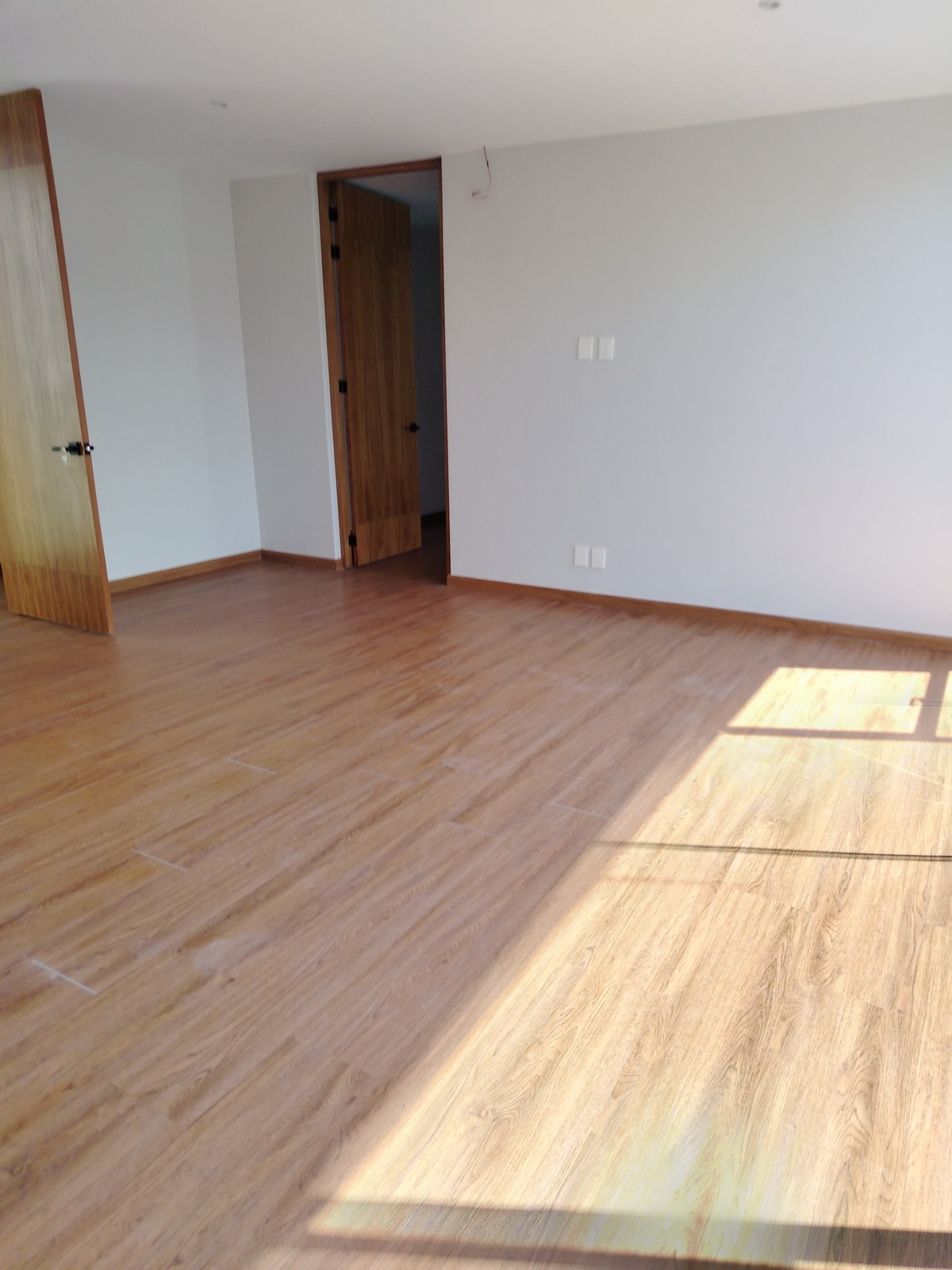 - 3 recámaras, cada una con baño privado y vestidor, ofreciendo confort y privacidad, sus materiales son en tono nogal con piso de ingeniería tipo nogal