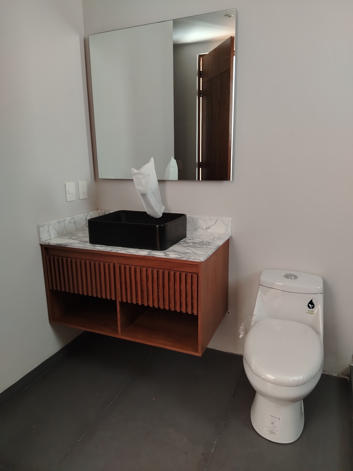 - 1/2 baño ideal para visitas. la cubierta esta hecha de marmol y carpintería en tono nogal