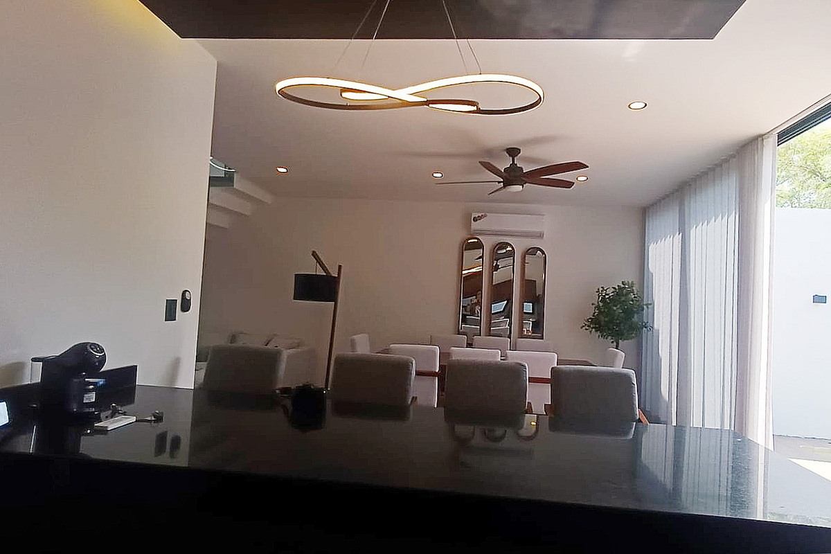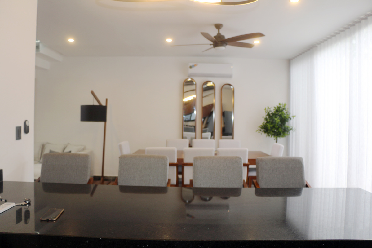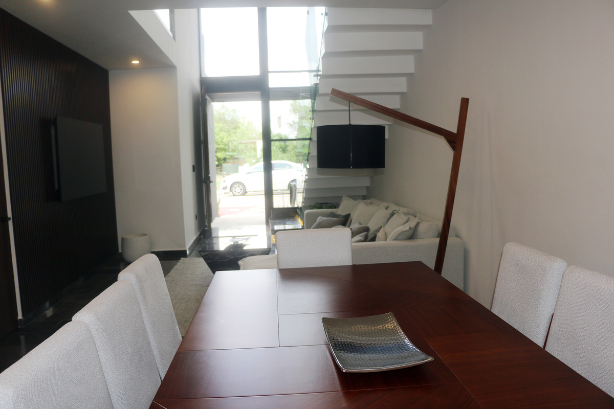 La sala es moderna, muy cómoda y te invita a descansar. Su estilo Nórdico Minimalista, te va a encantar. El comedor es para 8 comensales de gusto exquisito.