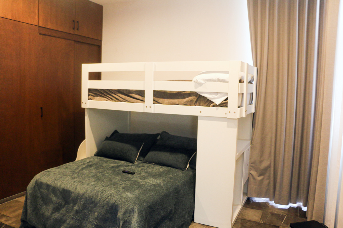 La Recámara secundaria, cuenta con litera infantil, balcón con vista al frente, baño completo y closet amplio.