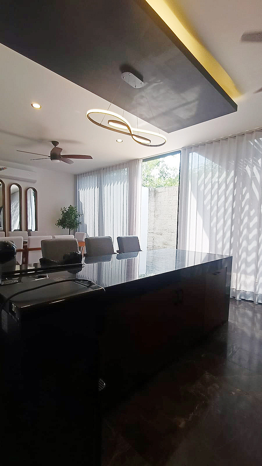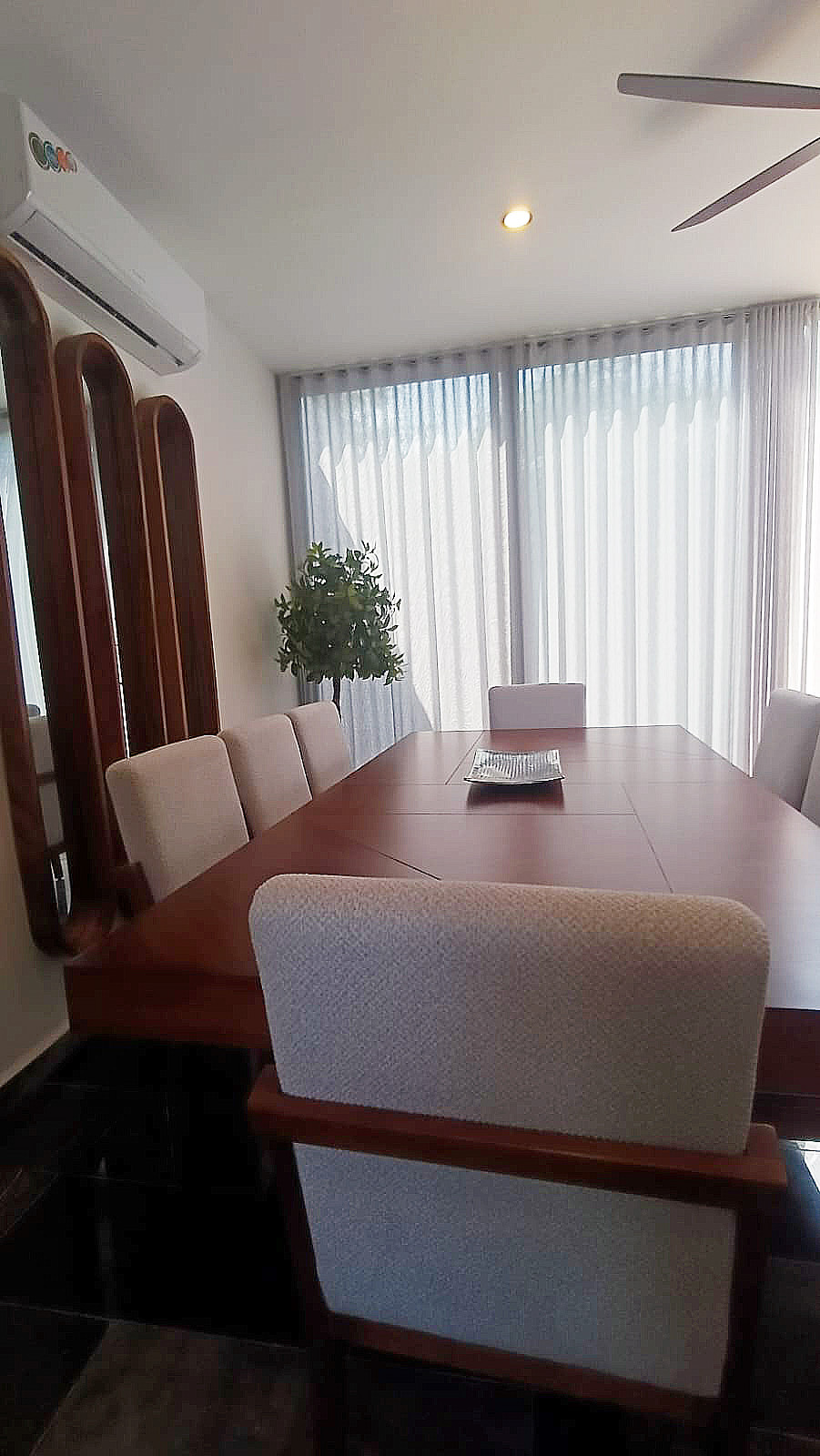 Equipado con A/A, ventilador con luz, cortinas delgadas y gruesas muy lindas.