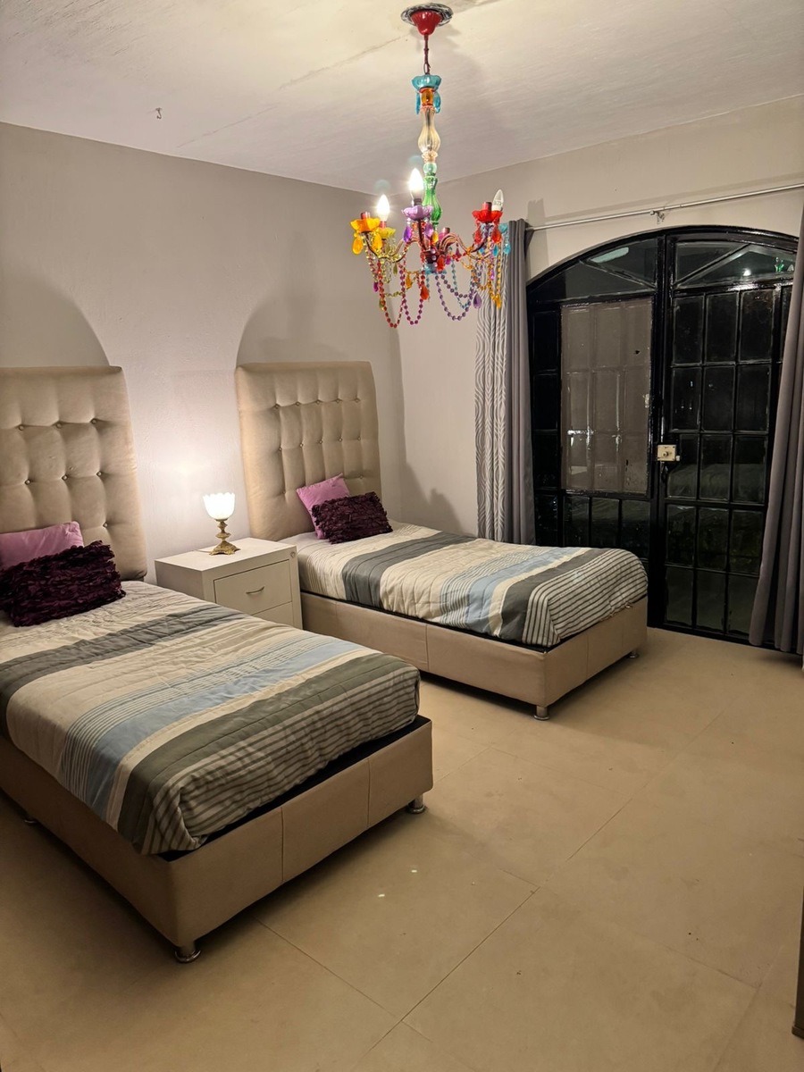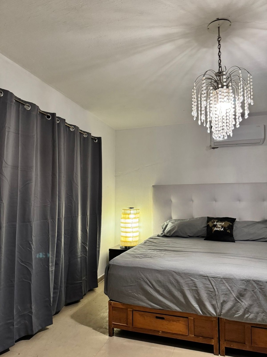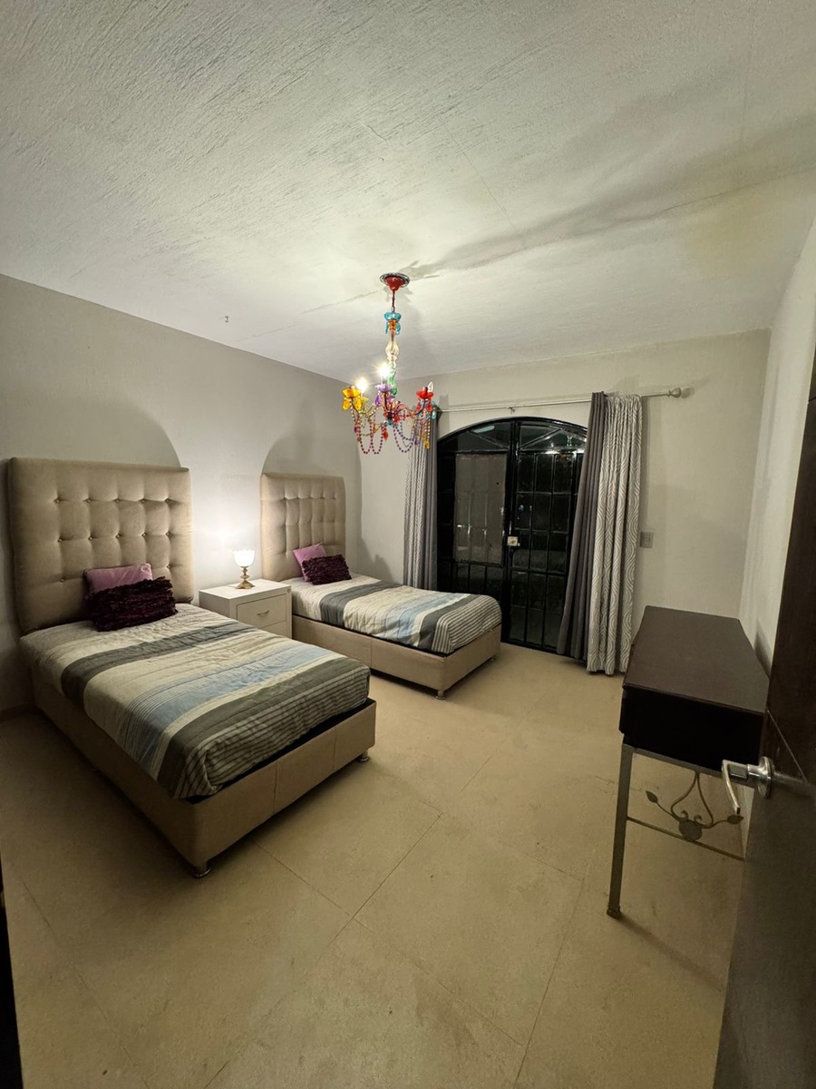 PA: recámara principal con walking clóset y baño completo y cama king size, 2 recámaras secundarias con baño completo compartido una recámara con cama king size y la otra con dos camas individuales.