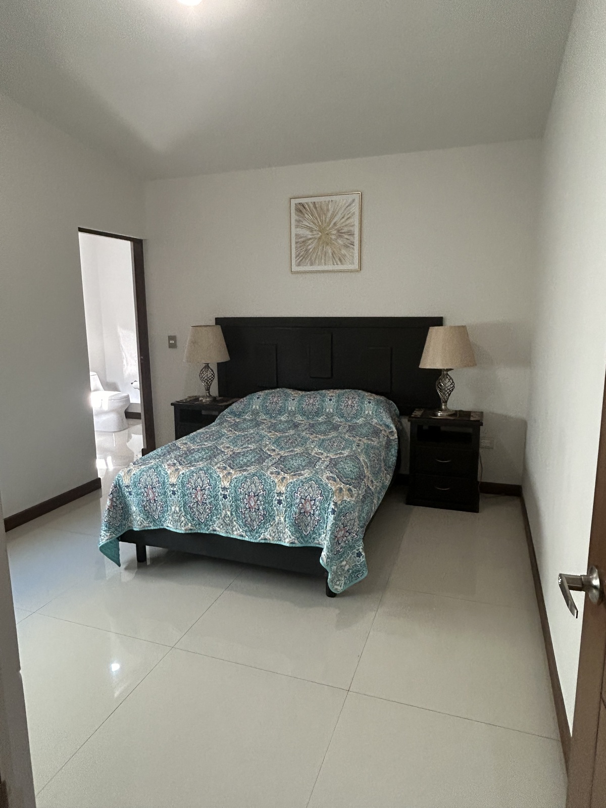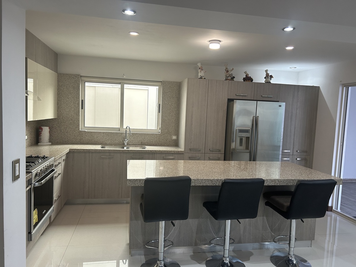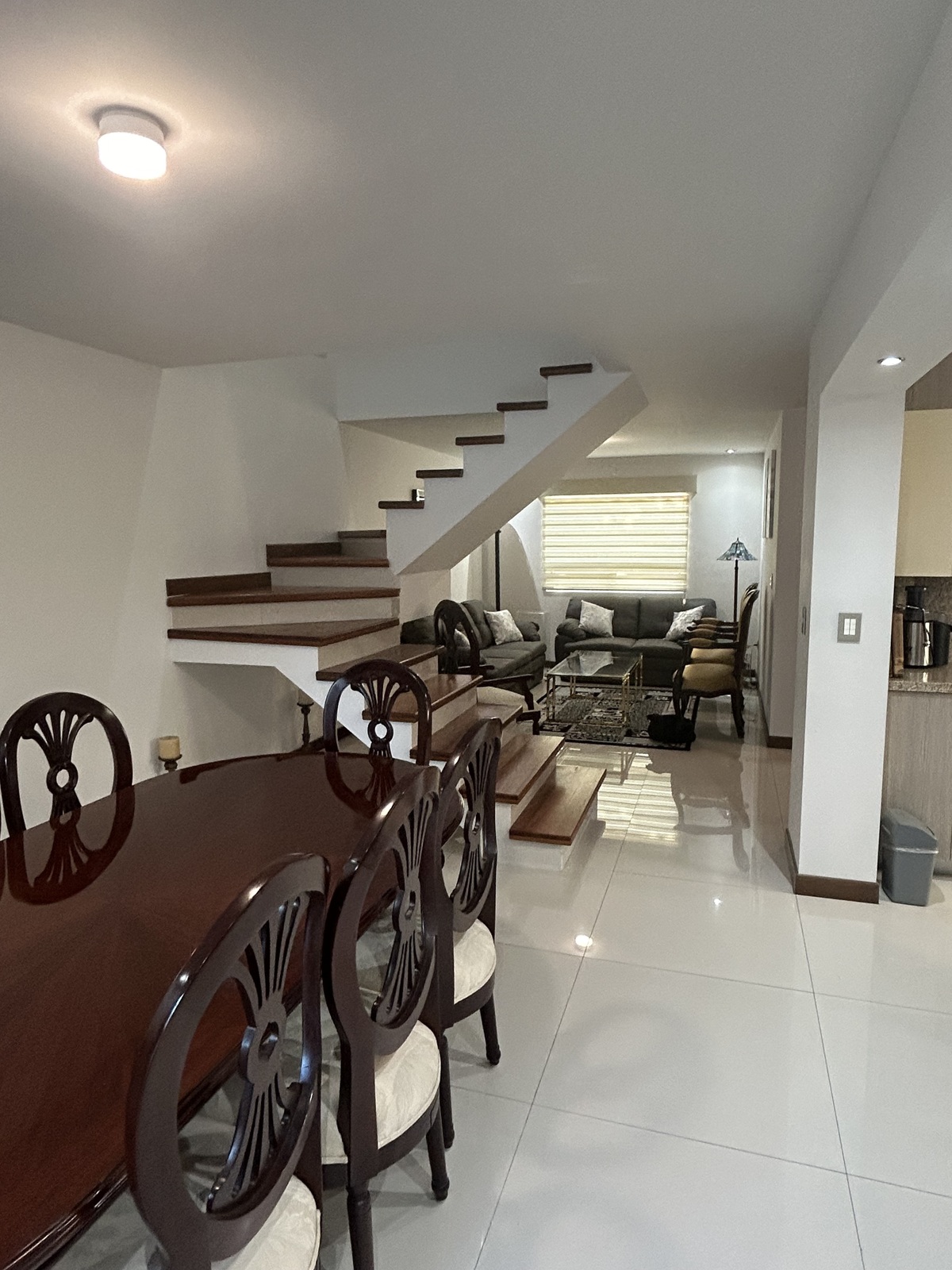 Cochera para dos autos , con portón eléctrico, recibidor , baño completo , sala comedor y cocina abierta equipada con cubierta de granito.