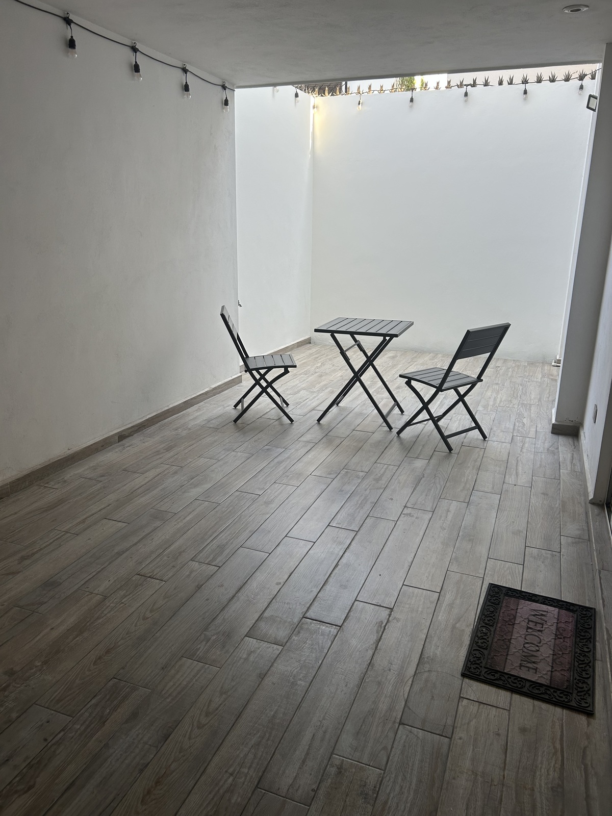 Patio pequeño tipo terraza ,medio baño de servicio y lavandería.
