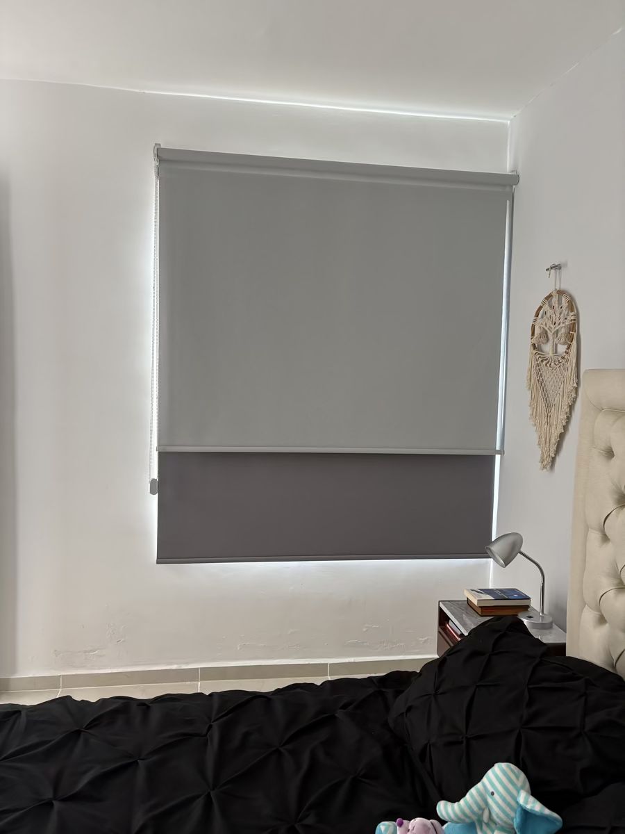 Persianas blackout y doble persiana (privacidad y blackout) en recámara principal, persianas en cocina