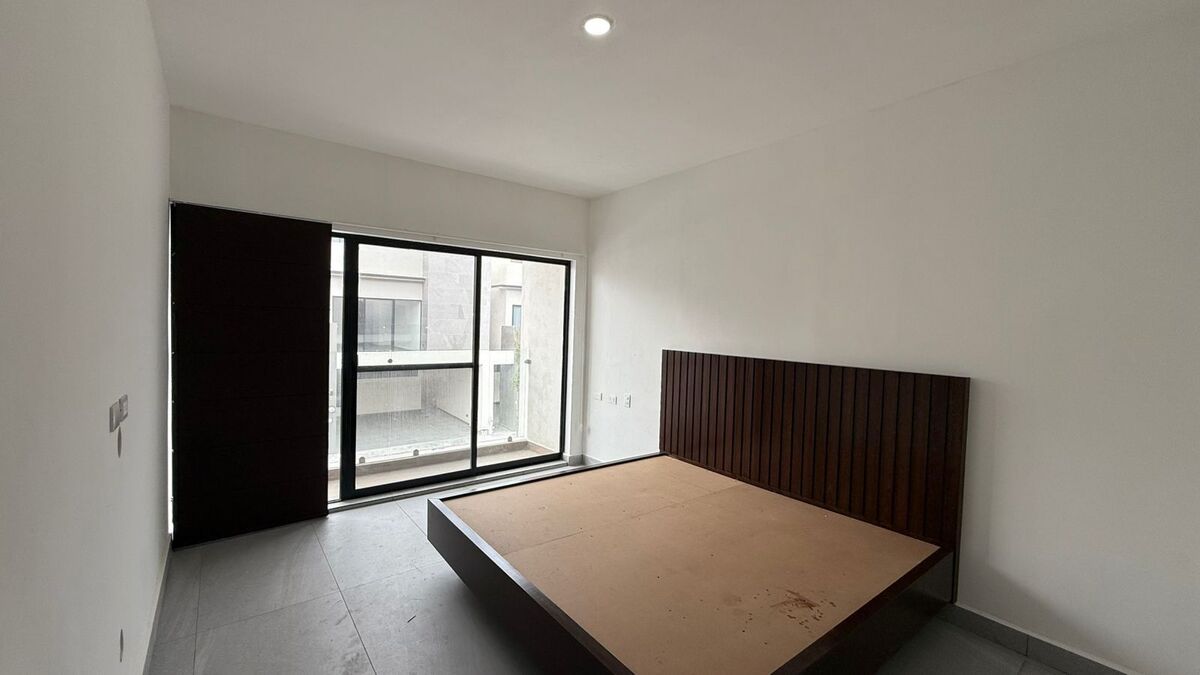 Recámara principal con balcón, baño con doble lavabo y walk in closet.