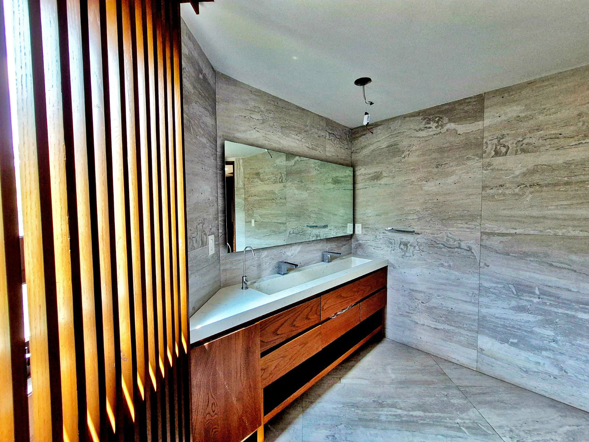 The house has three bedrooms, each with unique features. The master bedroom is a true oasis, with two spacious and well-designed walk-in closets, one for men and another for women, allowing for great organization and storage of clothes and accessories. Additionally, it has a huge and luxurious bathroom, perfect for relaxing after a long day.