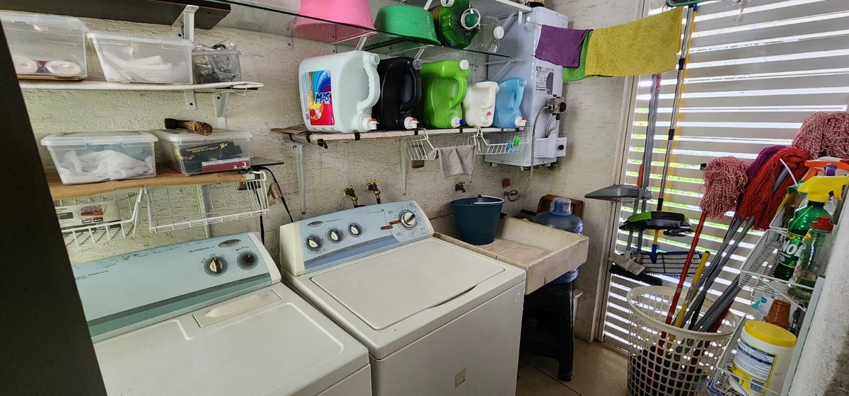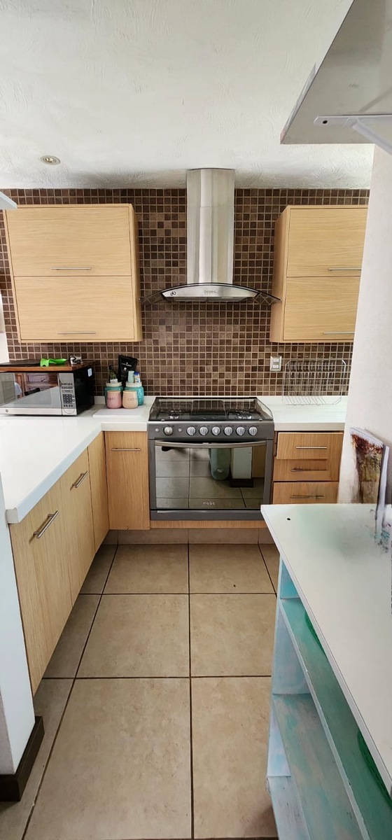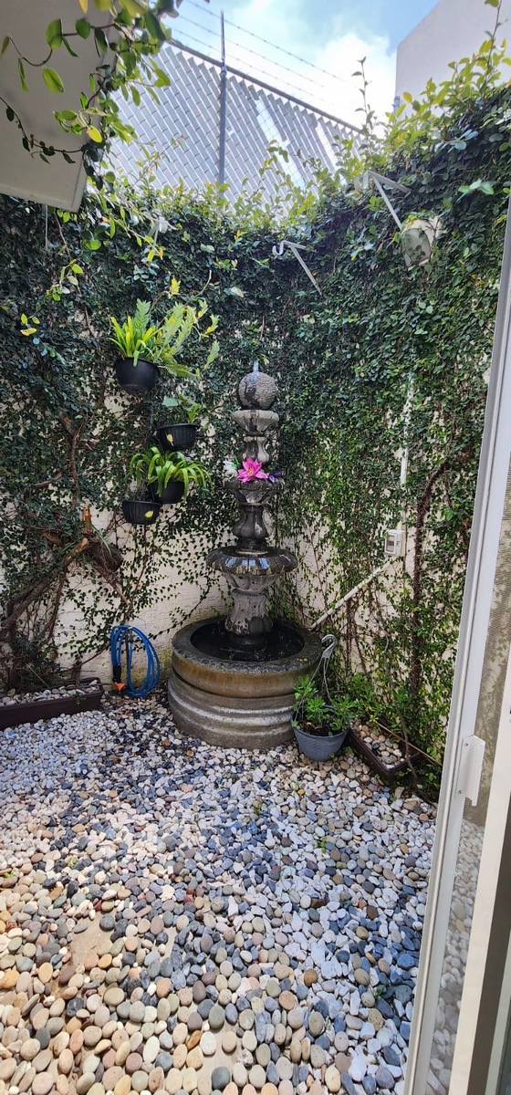 ☆ Cochera 2 autos, recibidor, medio baño, cocina integral con barra, comedor, sala y jardinera con fuente.