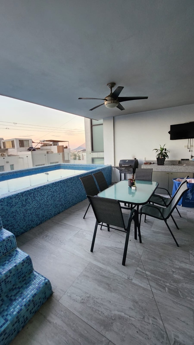 En el área social podrás disfrutar de una alberca con terraza y espacios abiertos, además de un jardín con acceso desde las recámaras secundarias, perfecto para la convivencia familiar.