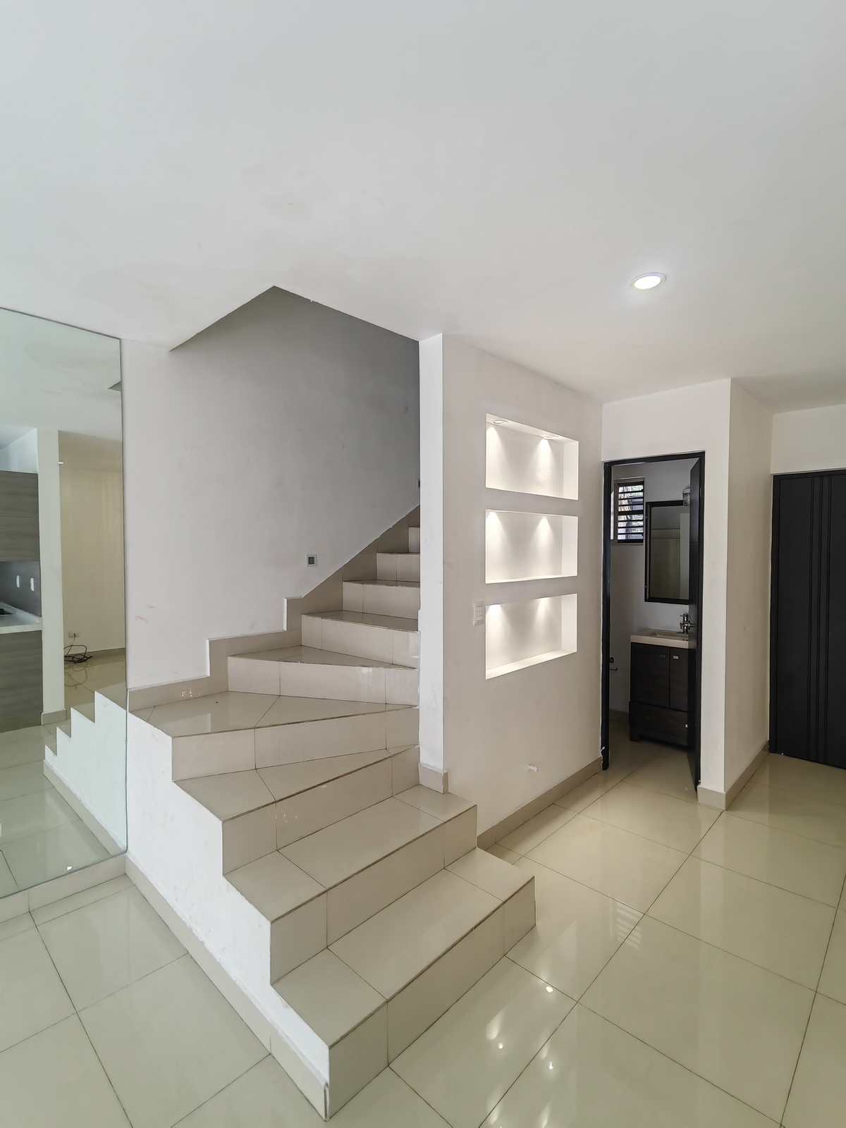 PLANTA ALTA: estancia, recámara principal con baño vestidor, dos recámaras secundarias con closet de pared y baño completo compartido.