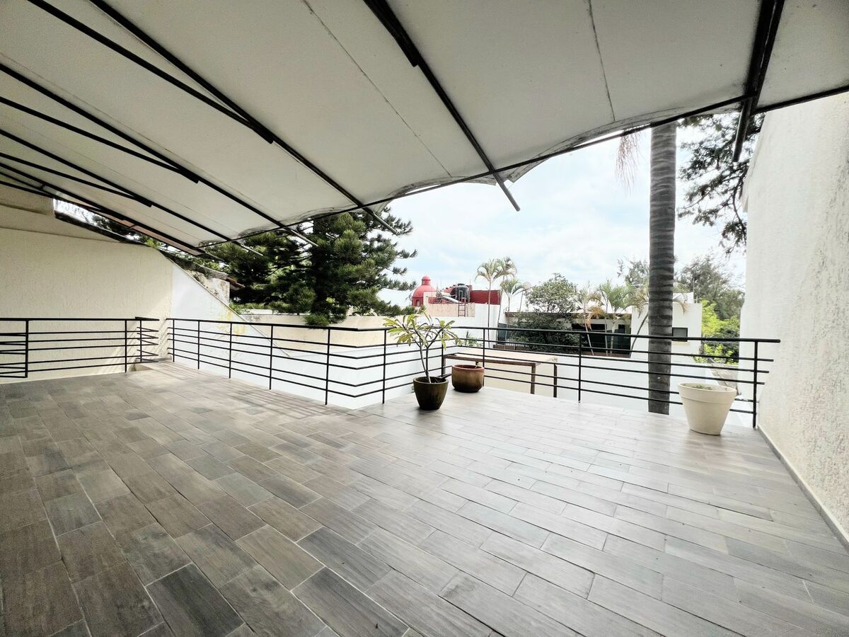La terraza cuenta con escalera que conecta al área de jardín (un nivel abajo) y otra terraza, en este nivel se cuenta como opción a otra recámara adicional o salón de juegos, además de tener el cuarto de servicio y un baño completo.