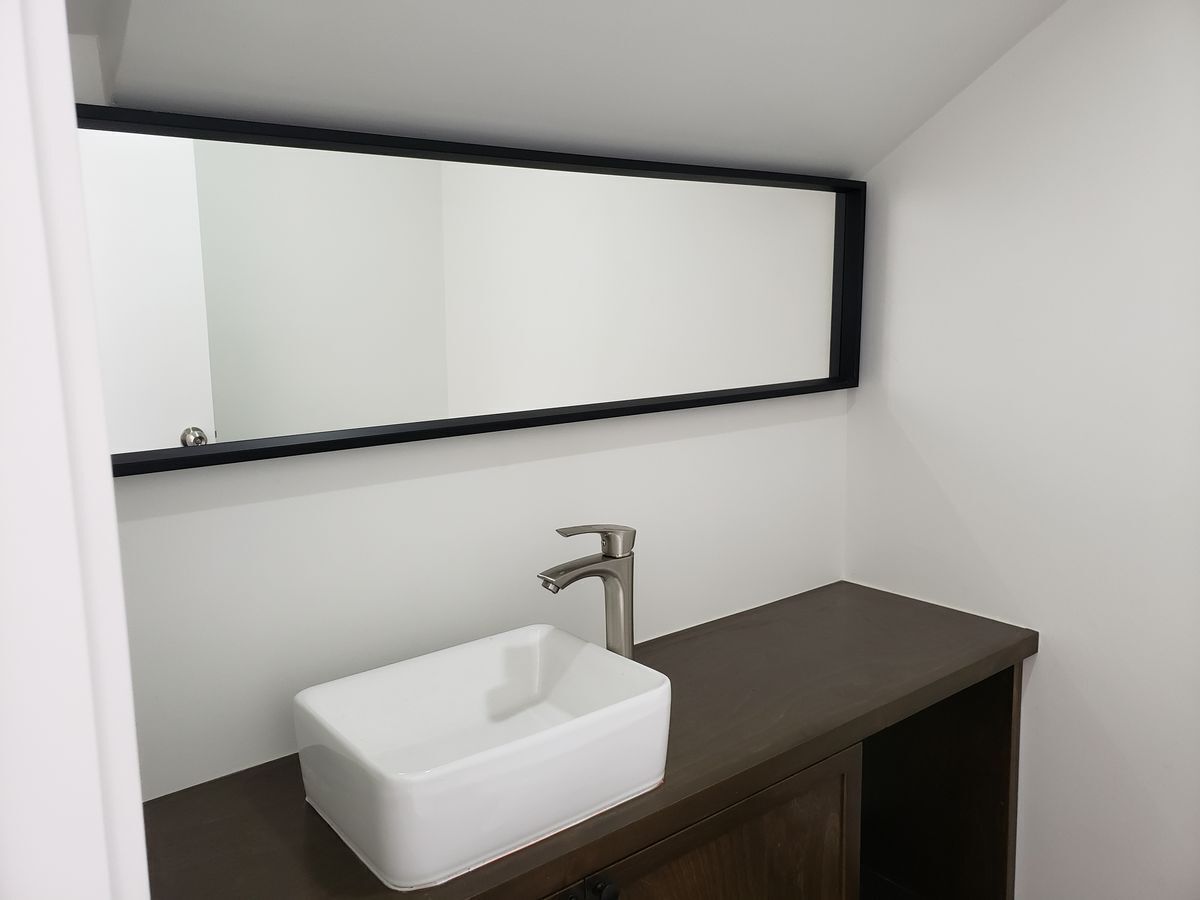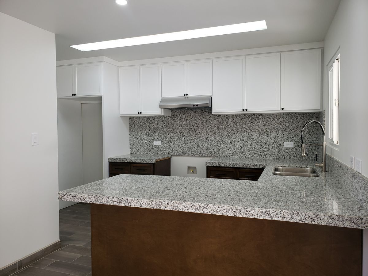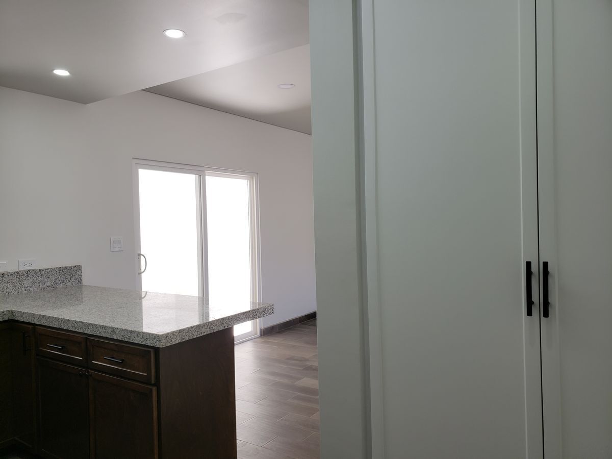 The house is new and has contemporary finishes, ceramic laminate flooring, a very spacious kitchen in light tones with granite countertops and a large pantry, a covered patio at the back, and a half bathroom for guests.