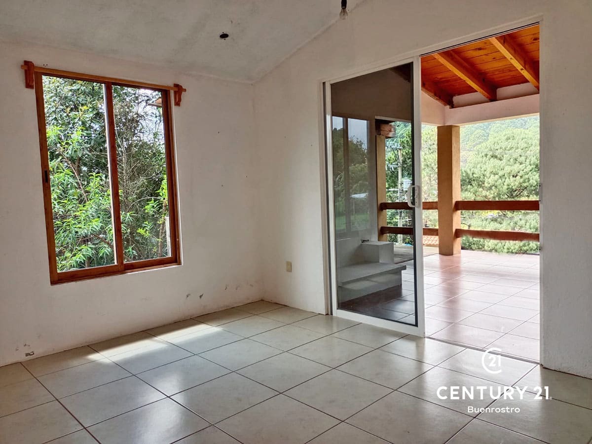 Al subir al primer piso tienes el área social de la cocina abierta y sala, comedor. Dos recámaras están en ese piso y comparten el baño completo. En un piso más arriba están otras dos recámaras que tienen salida a la gran terraza techada con vista a Monte Alto y al atardecer, incluso, a los papalotes surcando el cielo.