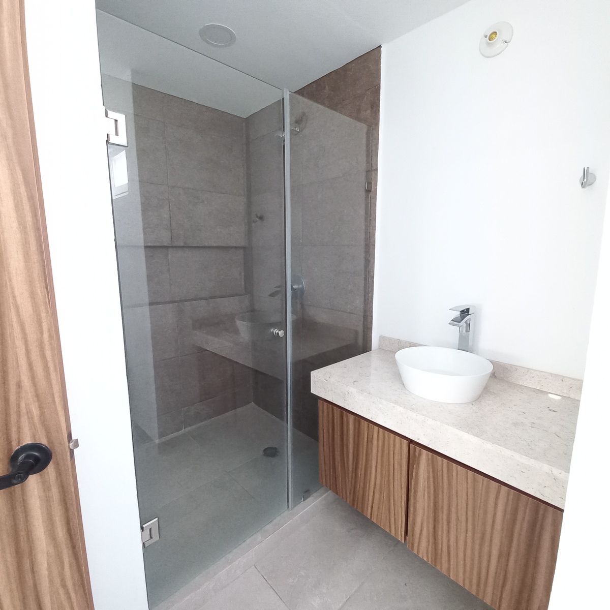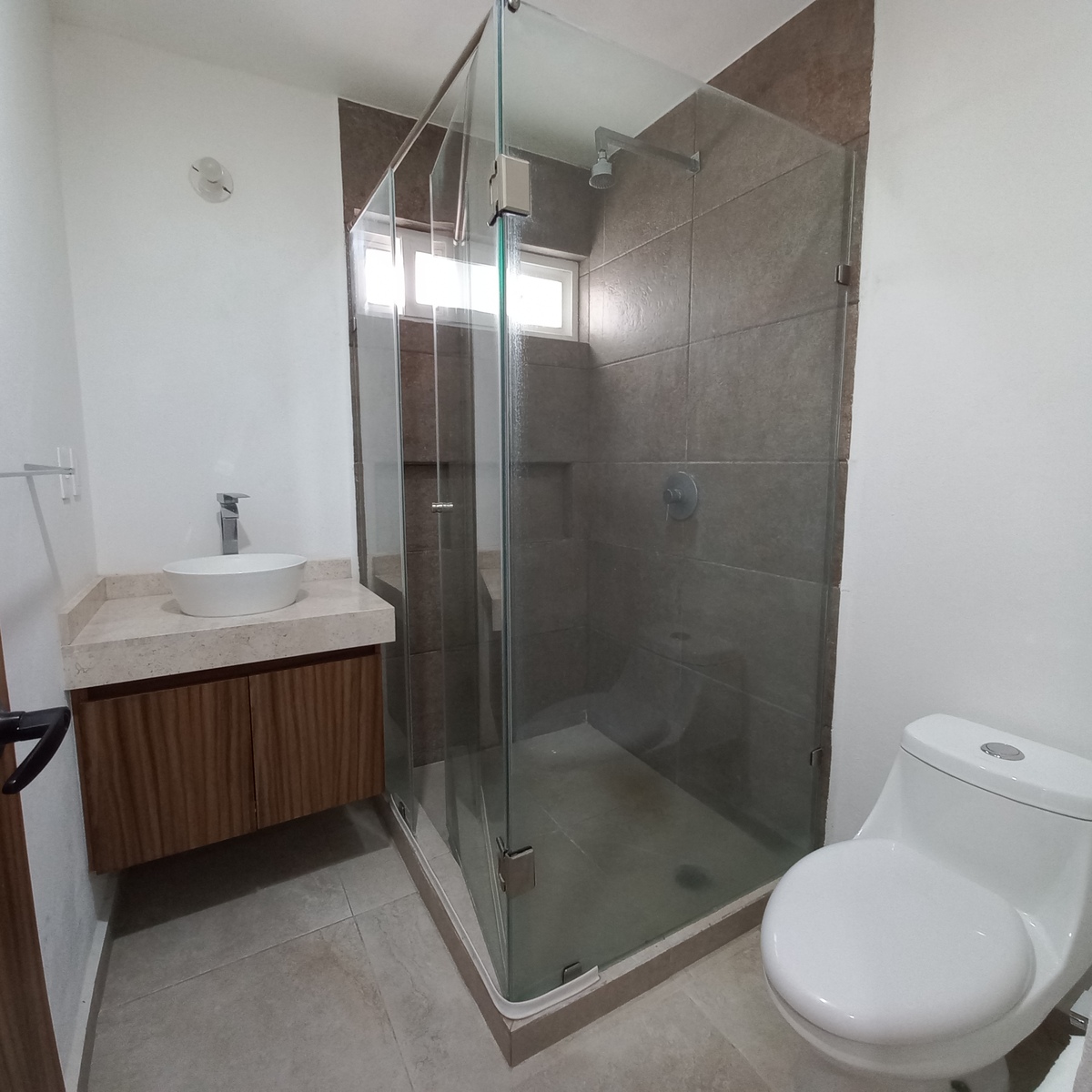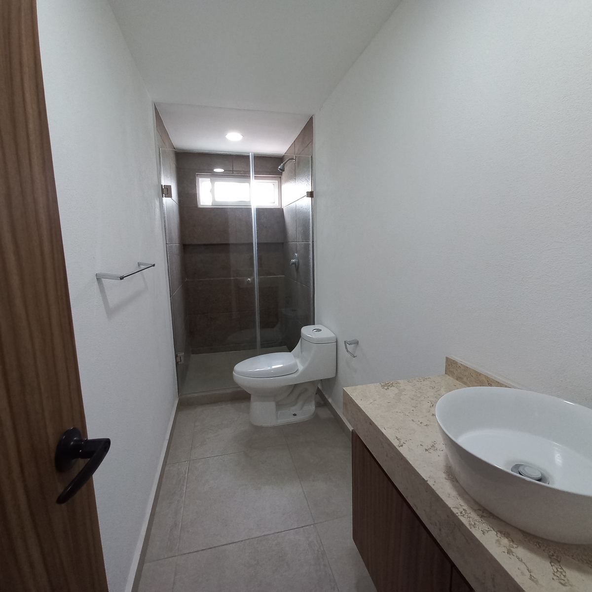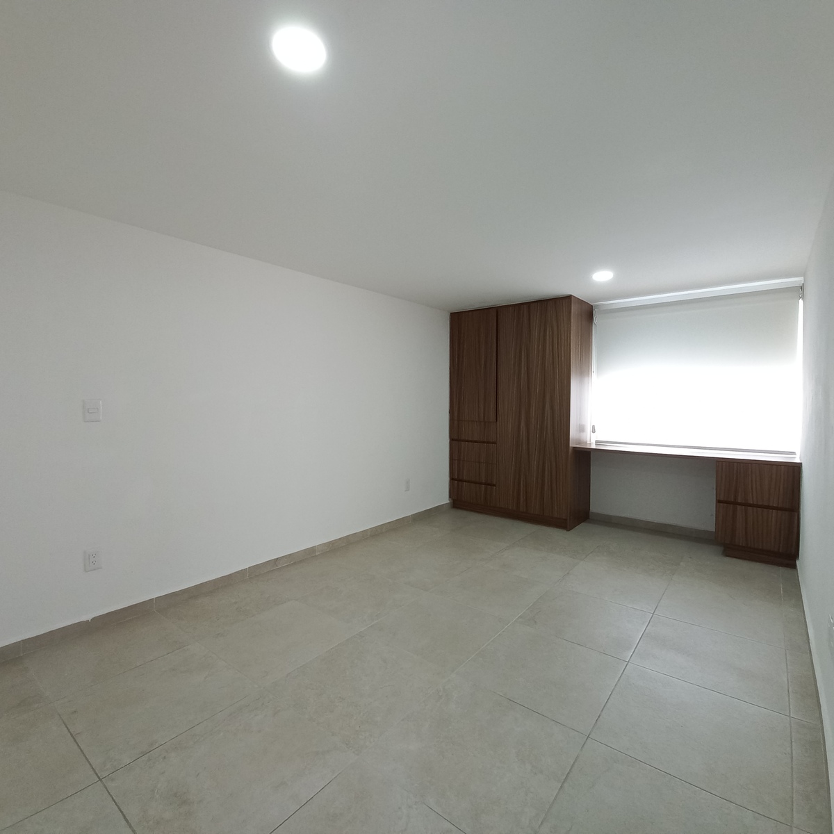 Sala de TV más estudio (ideal para home office) y 2 recámaras, cada una con baño completo y clóset.