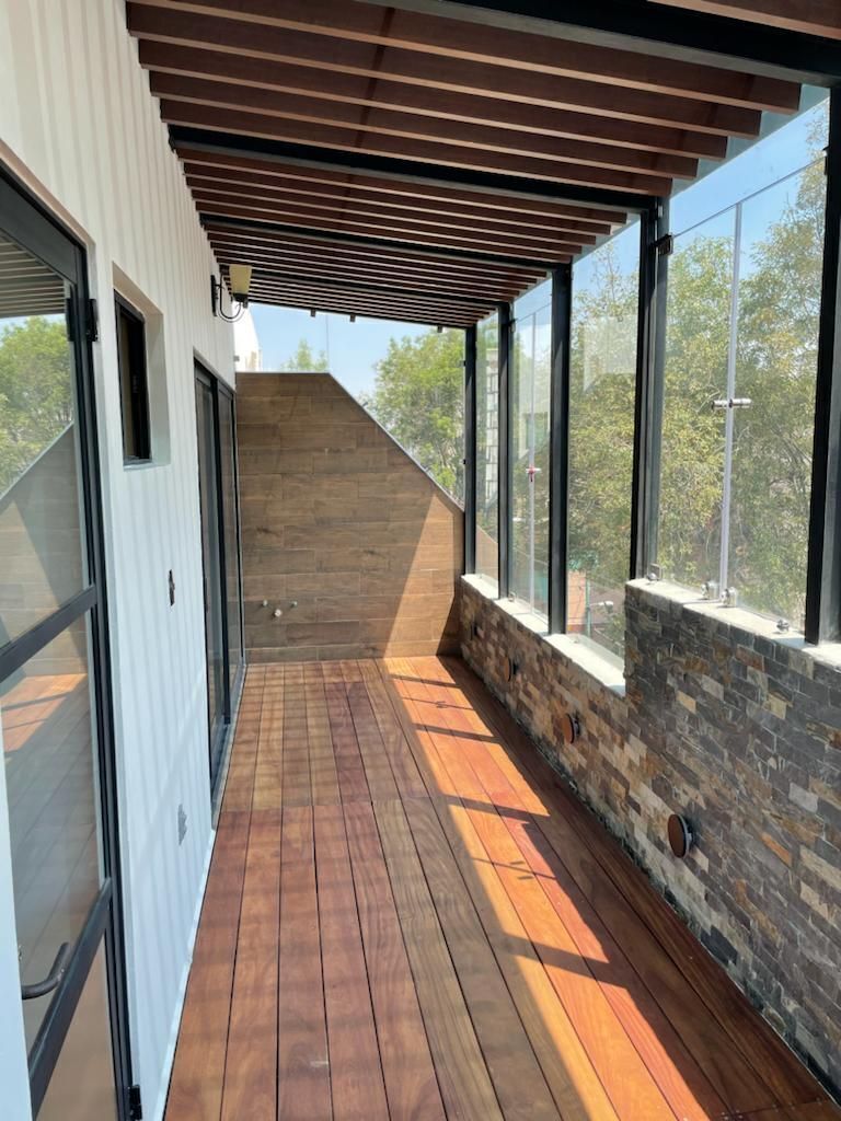 🌇 Terraza cerrada en vidrio con piso de madera, cálida y versátil — perfecta para reuniones o disfrutar las vistas de la colonia.