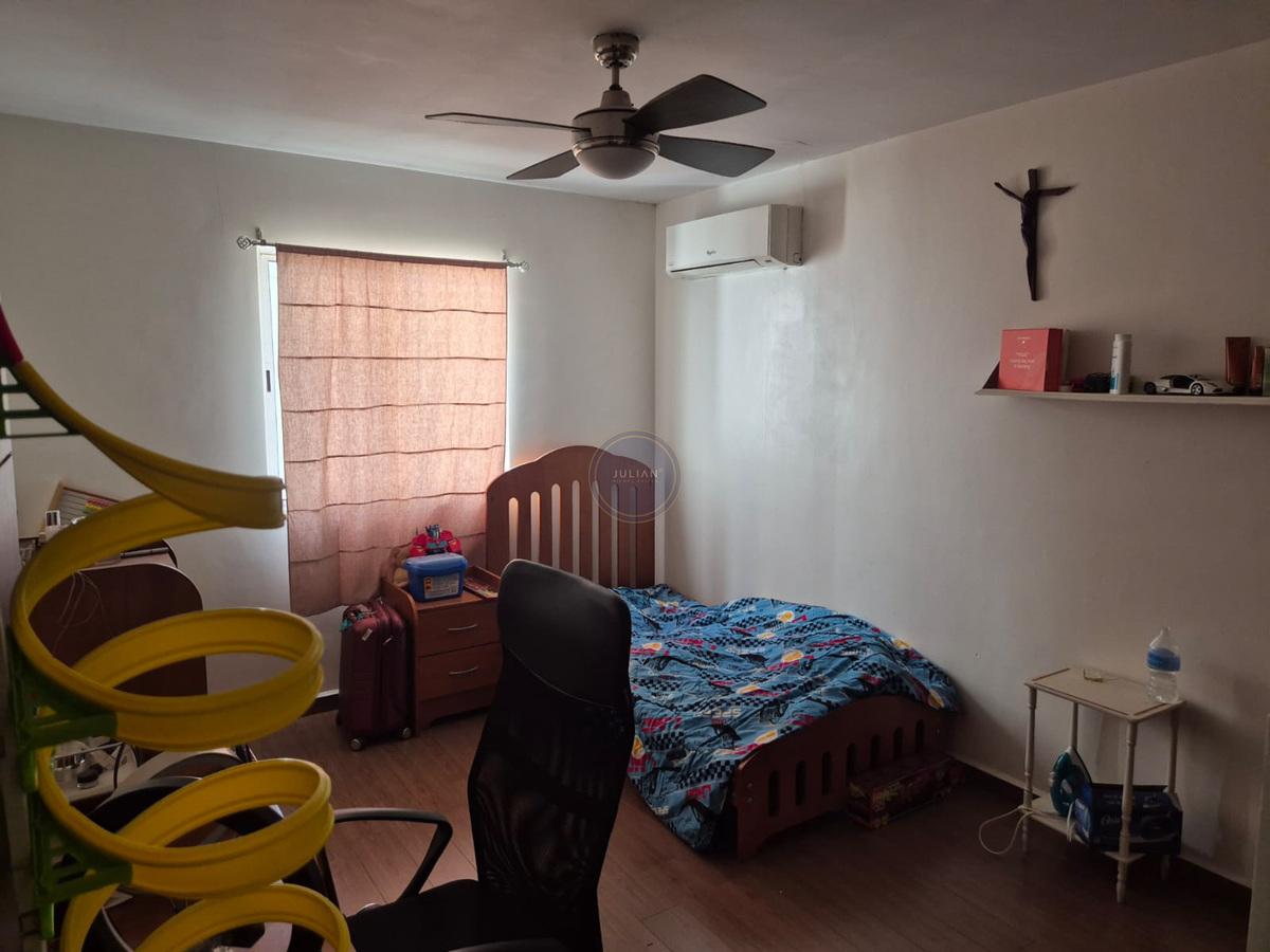 Segunda : recamara principal con cama kingside, abanico, walking clóset, baño completo, miniaplit, dos recamaras secundarias la primera con cama individual, abanico, clóset de pared, segunda recamara cuenta con miniaplit, walking clóset, baño completo, abanico. segunda recamara con cama individual, clóset de pared, abanico, estancia y baño completo.