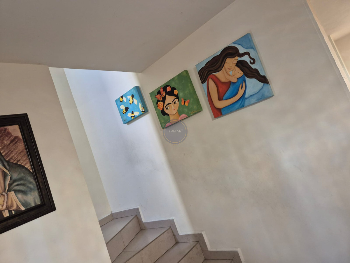 Planta baja, cochera para dos autos, sala, espejo, comedor de 6 sillas, cocina integral con estufa y campana, refrigerador,, medio baño, pasillo y Patio, lavanderia con lavadora, secadora,.