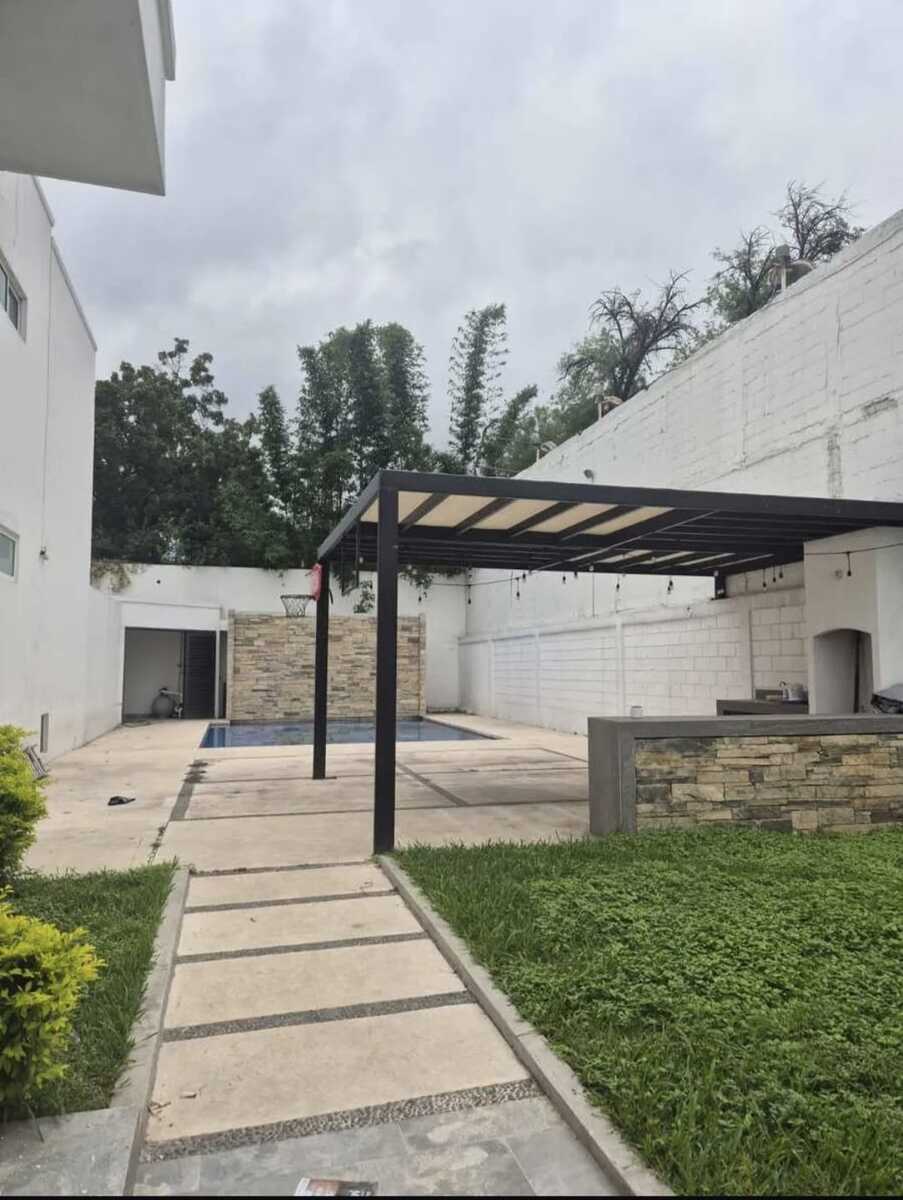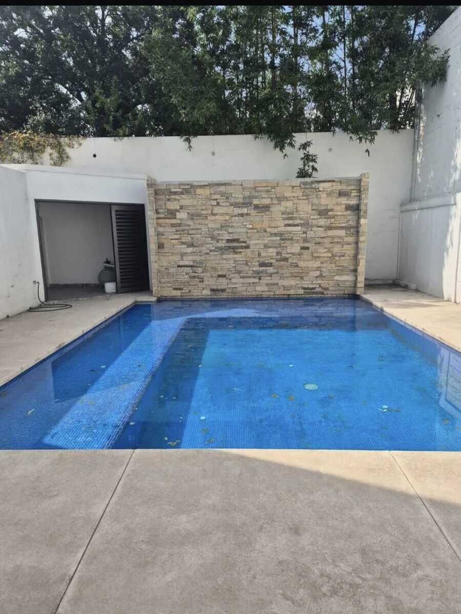 * Patio amplio con terraza, barra y asador, alberca, fuente, bodega y baño.