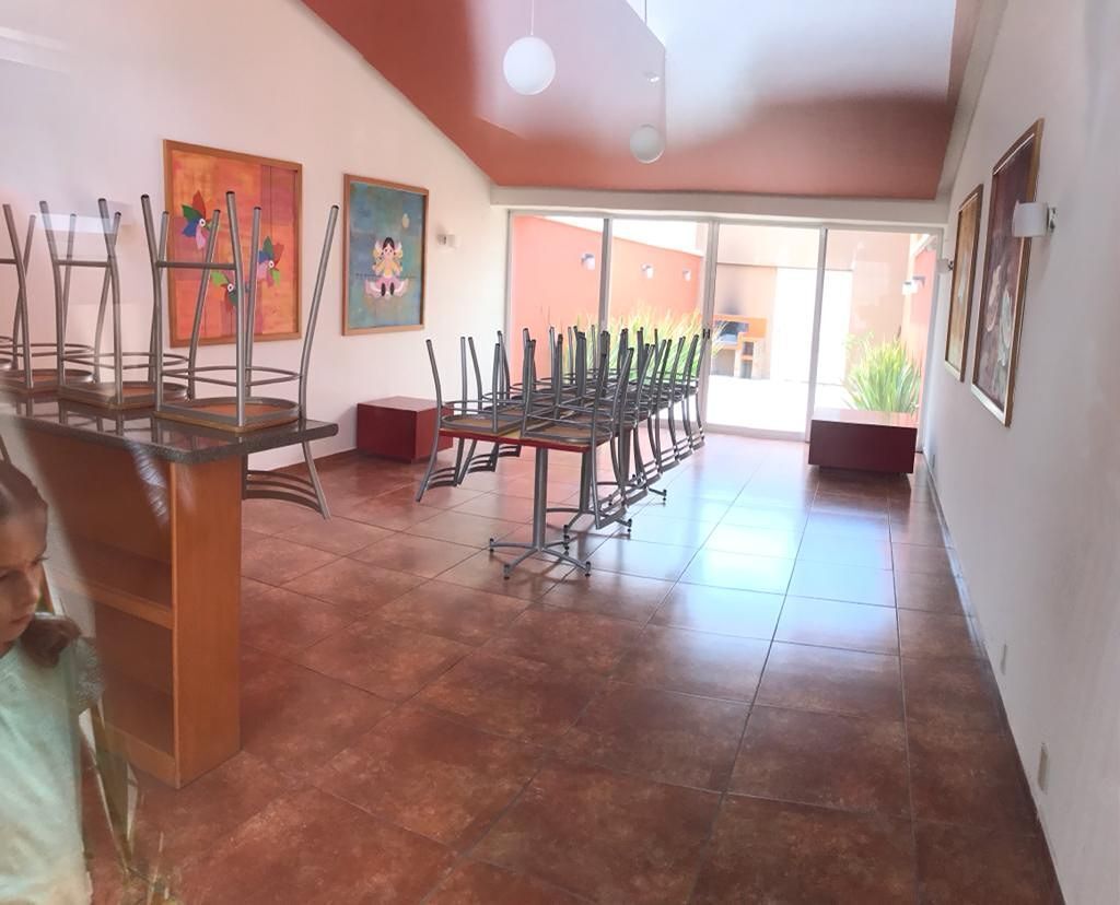 El condominio cuenta con salón de eventos, mesas, sillas, terraza con asador y persona encargada de aseo de áreas comunes de día y cámaras de videovigilancia.