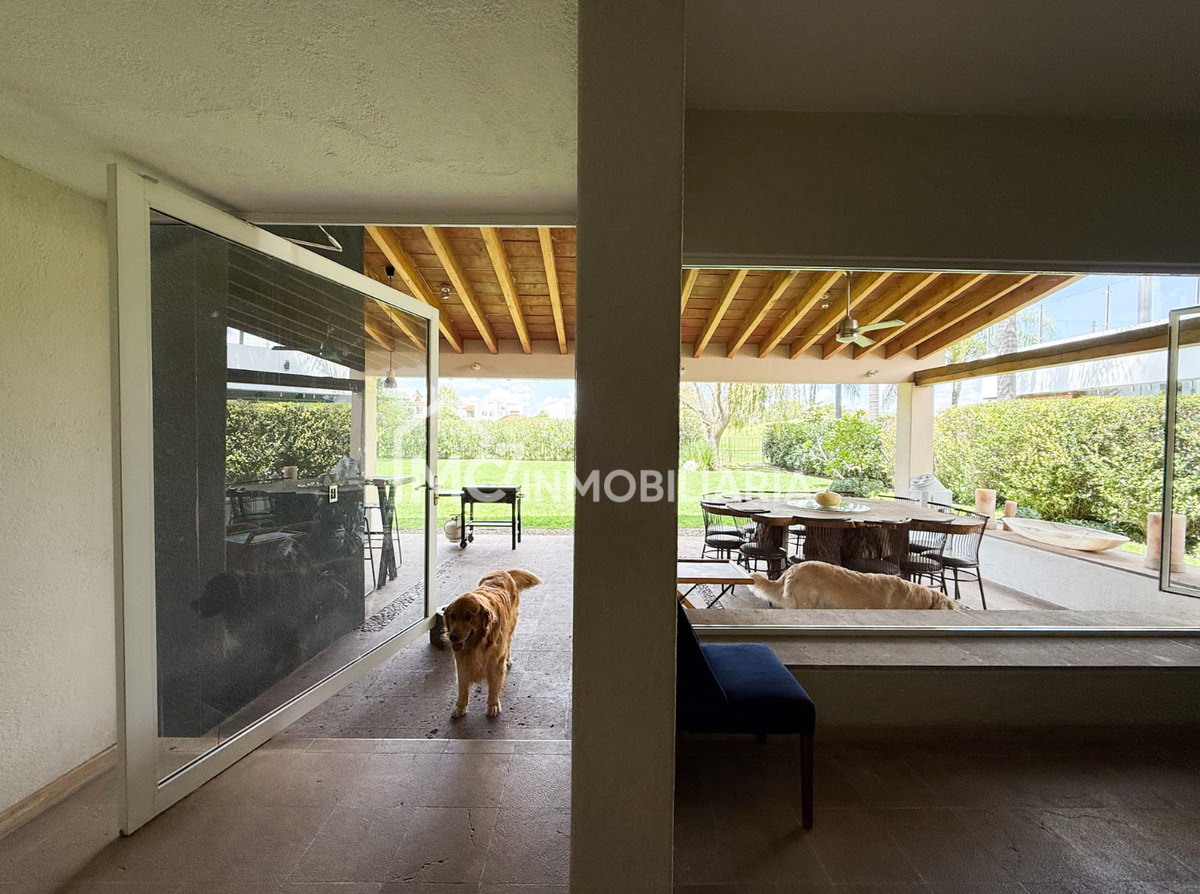 La casa se ubica frente al campo de golf y cuenta con un jardín único. Terraza techada al aire libre, comedor techado conectado al jardín, sala, comedor y cocina en planta baja junto con increíble family room.