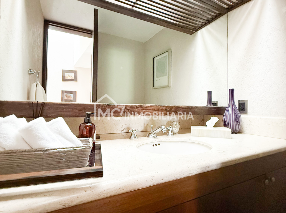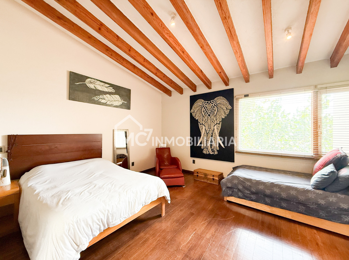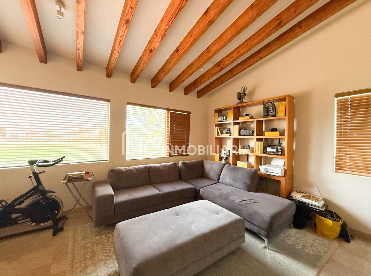 En planta alta cuenta con tres recámaras, cada una con vestidor y baño. Y además un increíble estudio entre todas las recámaras con vista al campo.