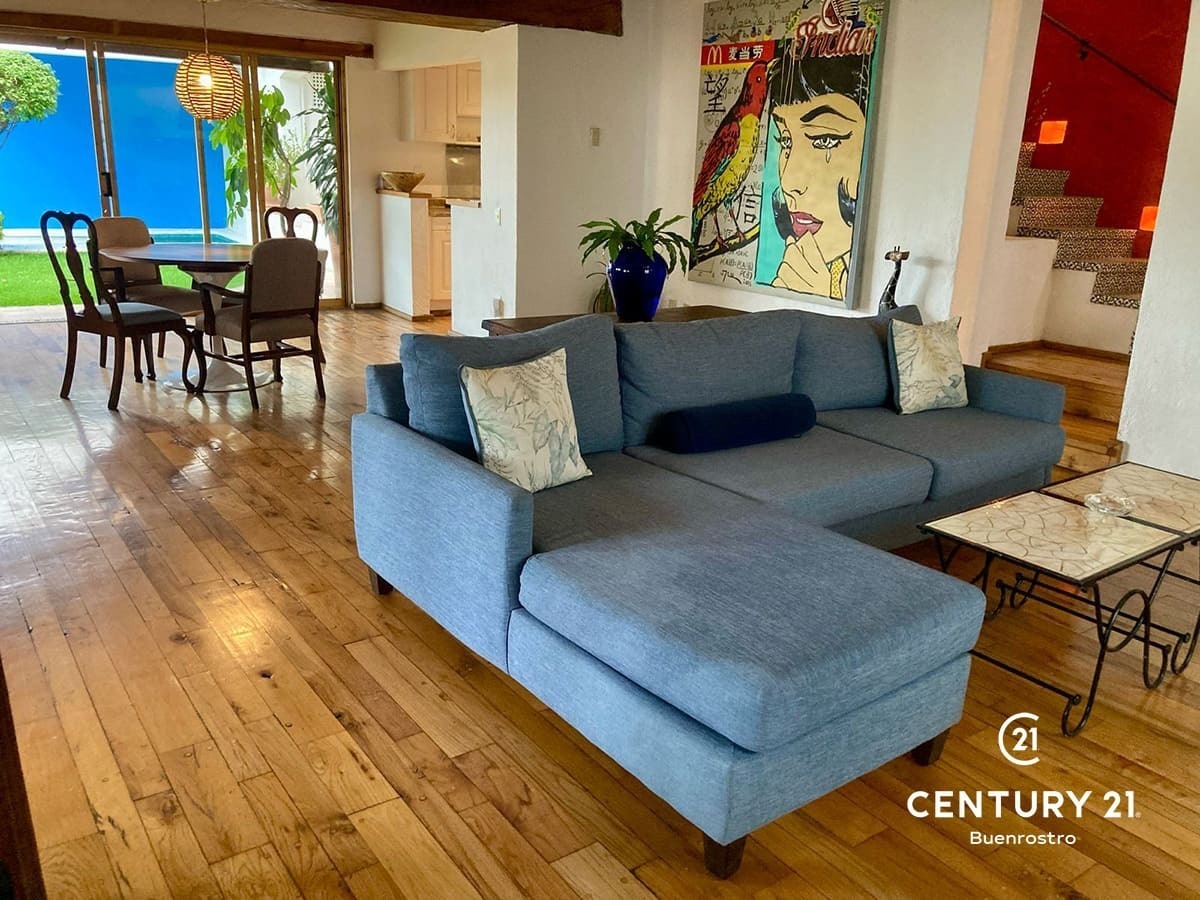 Está completamente amueblada y equipada, lista para que llegues solo con tus cosas. Aunque de dimensiones compactas, cuenta con todo lo que necesitas: chimenea, jardín, alberca, jacuzzi y un ambiente acogedor que invita a disfrutar cada rincón.