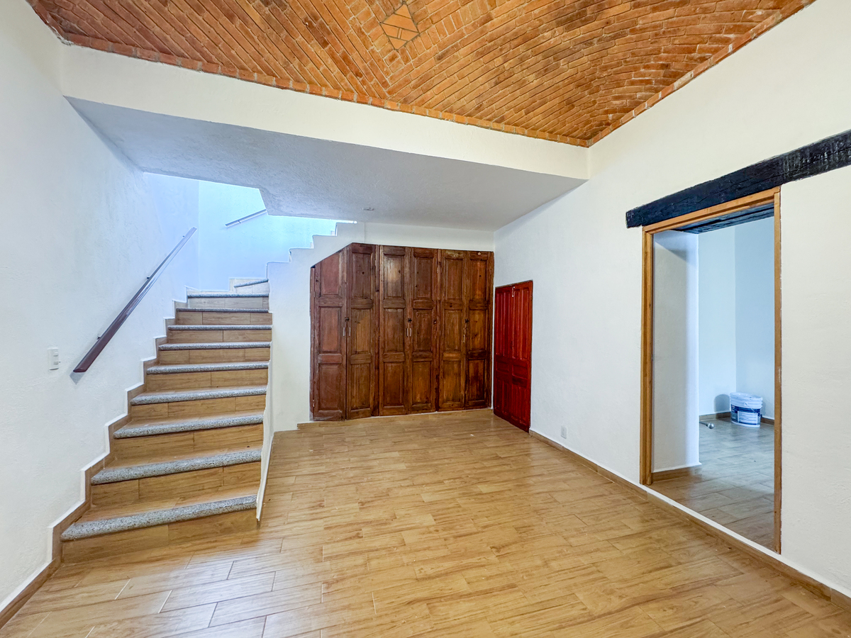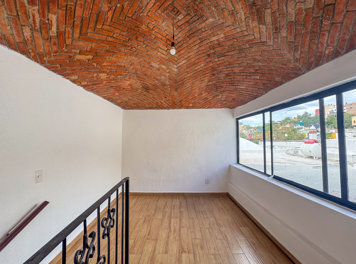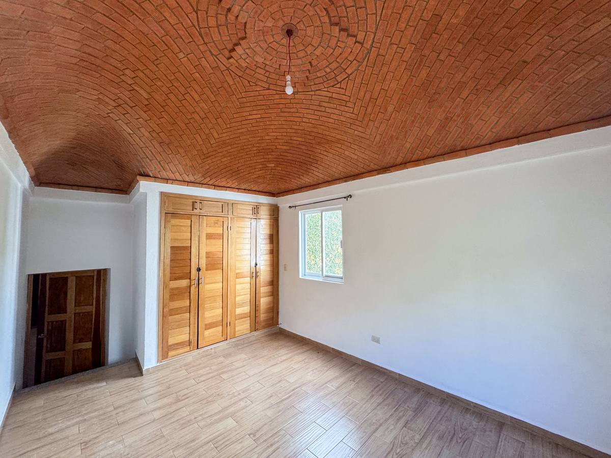 La casa ofrece un diseño de niveles intermedios. Subiendo una corta escalera, encontrarás la habitación principal, de excelente tamaño, con un techo de bóveda, un amplio clóset y baño completo privado, además de la primera habitación secundaria y un baño completo decorado con mosaicos de talavera. Un nivel más arriba, tendrás un espacio versátil que puede funcionar como estudio, sala de TV o pequeña habitación.