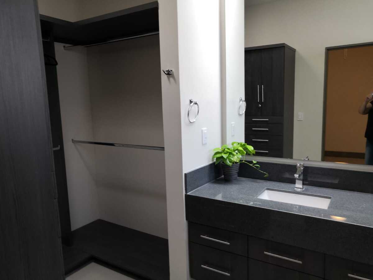Escalera lateral con barandal vidrio templado, 3 recamaras con su vestidor, baño completo, lavabo con cubierta de granito, espejo, lavaneta don mueble PDF, canceles de vidrio de piso a techo, con herrajes, sanitario y accesorios, abanico de techo y minisplit inverter inverter 1.5 tons en rec. principal, roperia MDF con cajoneras, repisas, maleteros y una amplia estancia con abanico de techo 5 luces, inverter frio/calor 1.5 tons, 2 recamaras secundarias inverter de 1 ton. abanico de techo, roperias MDF, lavabo con cubierta de granito y cajonera MDF, baño completo, espejo con luz led. Baño con canceles de vidrio de piso a techo.