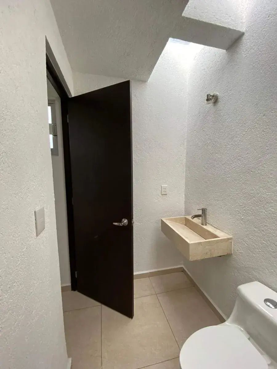 The subdivision has 24/7 security, amenities that you can enjoy at any time with your family (Swimming pool, Sports Club, Parks and green areas, barbecues, Bike cross track, and Children's areas); with easy access to fast roads in Querétaro, close to schools and shops.Amplia casa de dos niveles con tres recamaras ubicada en Fraccionamiento