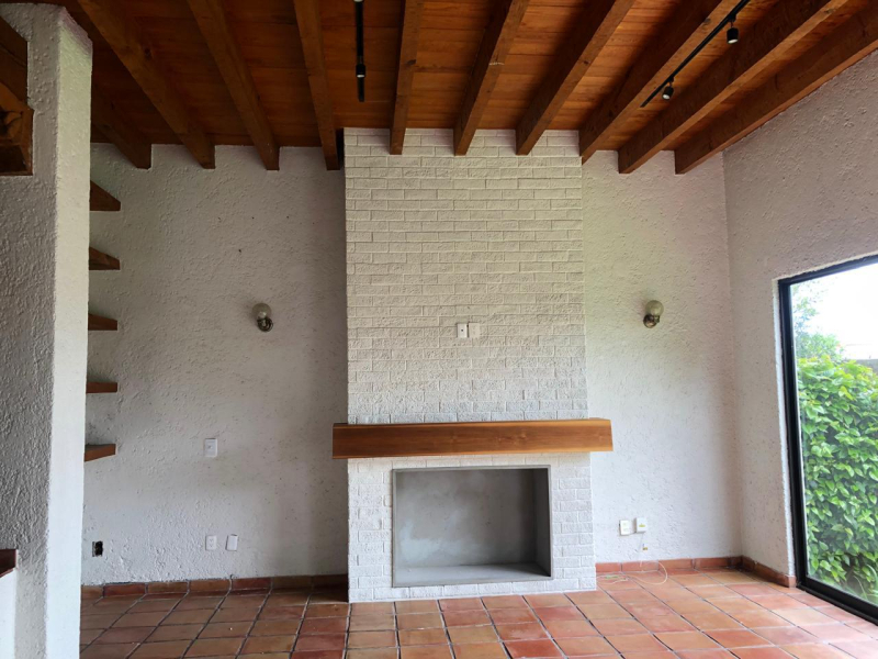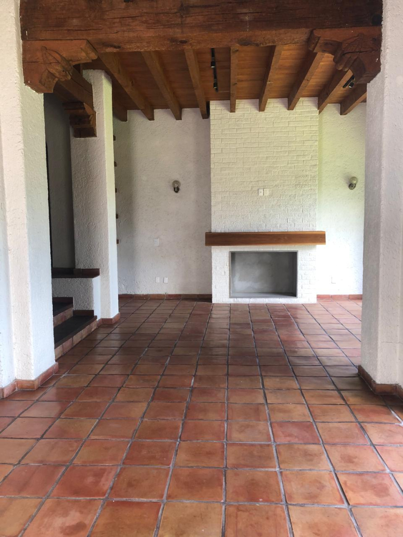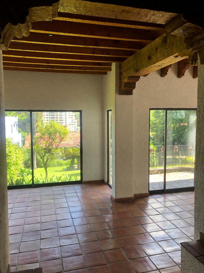 This house in Mexican colonial style features traditional clay floors and beautiful high gabled ceilings with lovely wooden beams, located in one of the most family-friendly and safe neighborhoods in Mexico City; 15 minutes from Santa Fe and five minutes from Bosques de las Lomas.