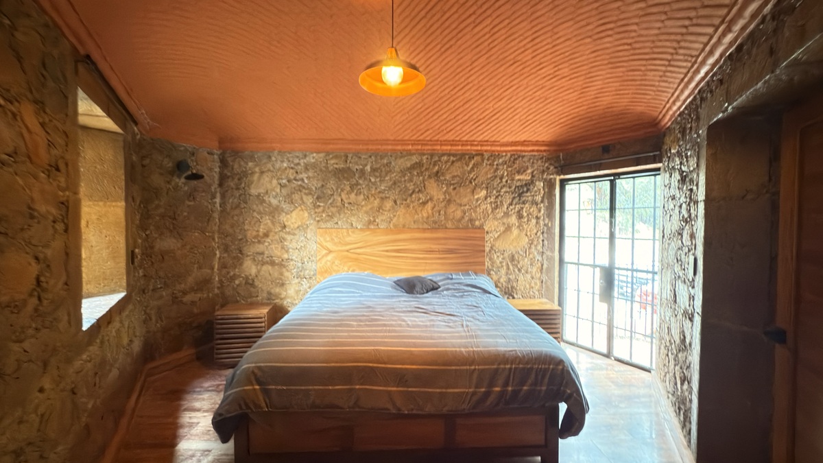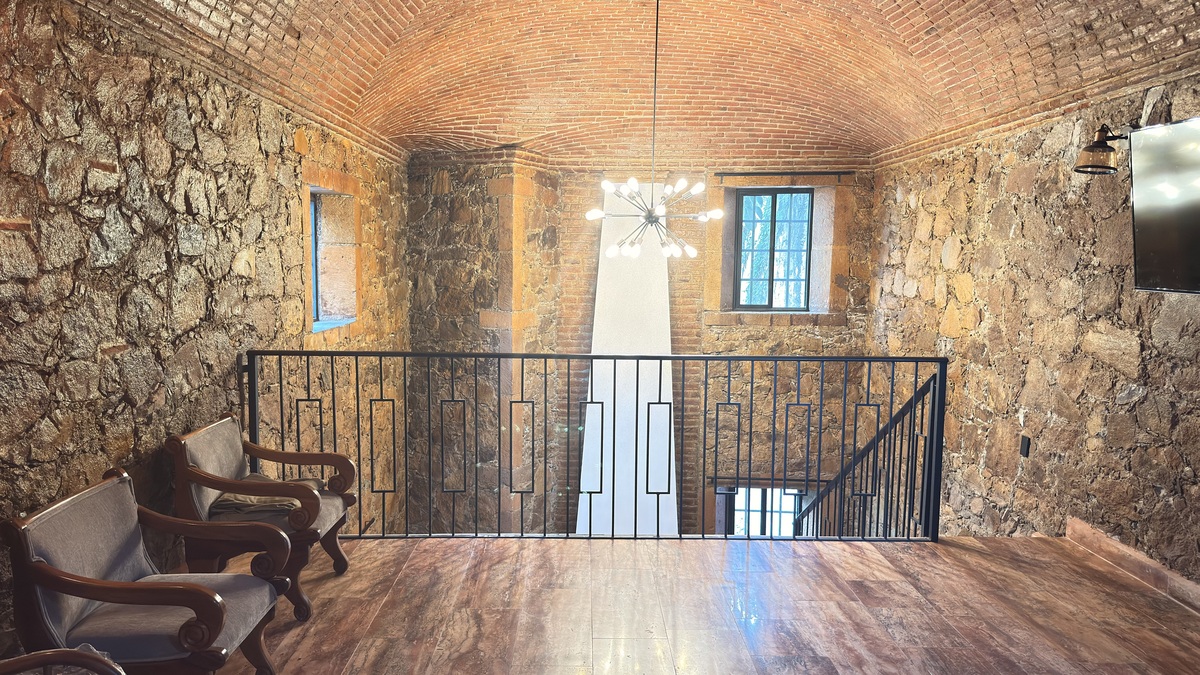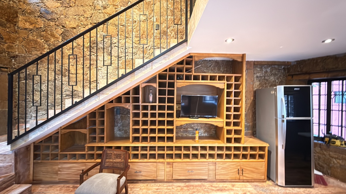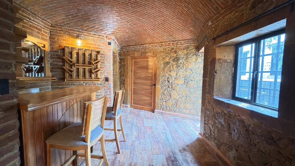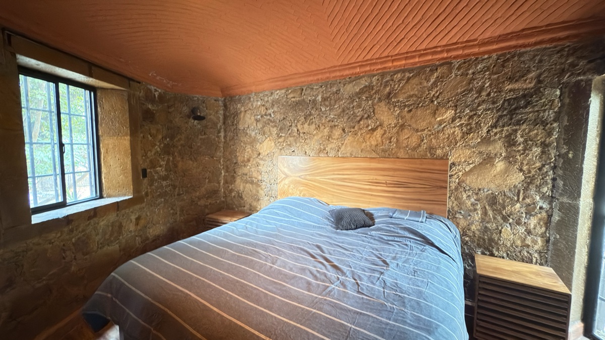 Hermosa casa en renta con un estilo rústico contemporáneo, rodeada de acabados en piedra, madera y elementos de hierro forjado que le brindan un carácter único.