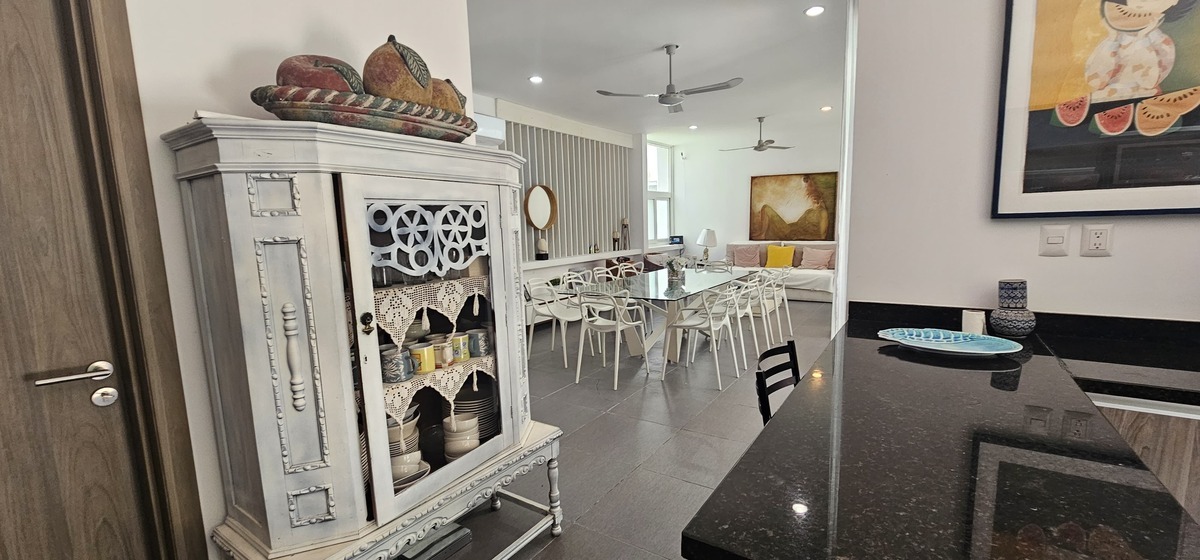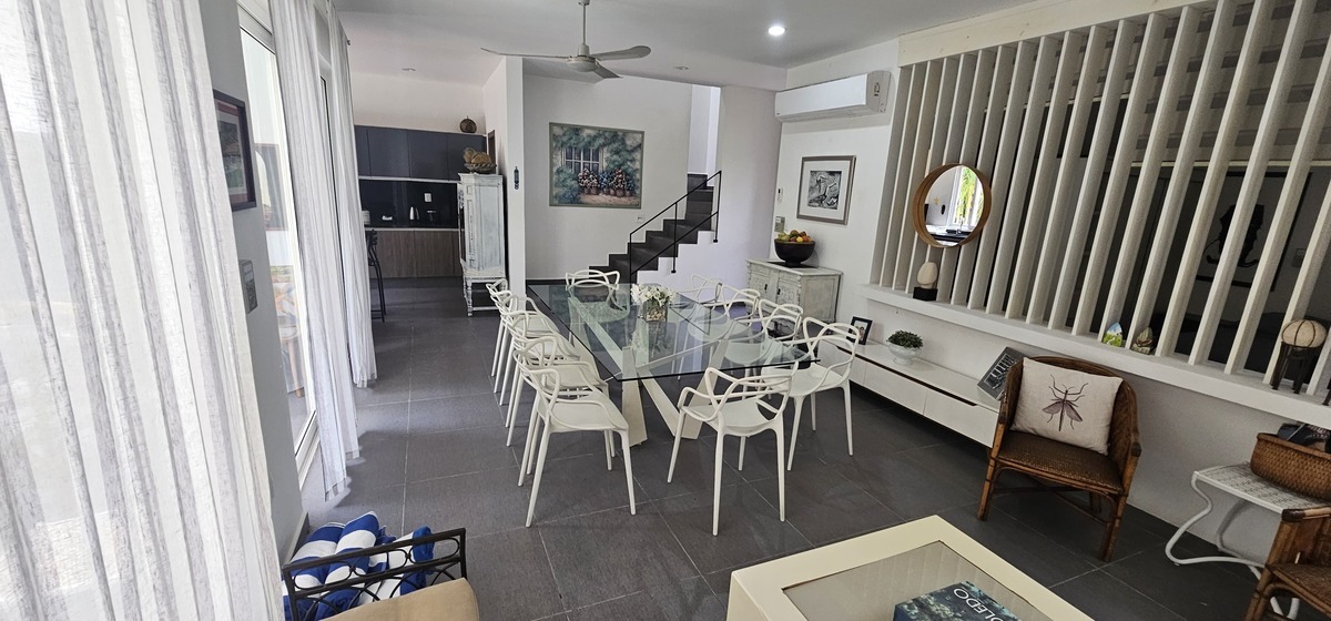 Toda la planta baja esta integrada y totalmente climatizada por lo que no sufrirás de calor mientras disfrutas de una hermosa vista a la terraza techada y piscina.
