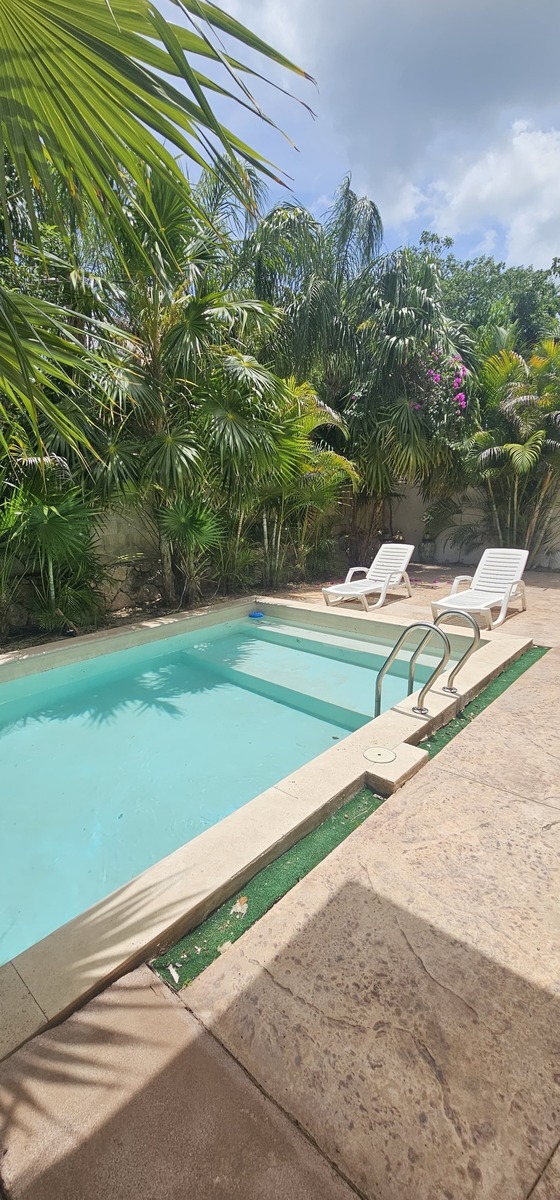 Tarraza techada, alberca y cuarto de lavado y servicio con baño.