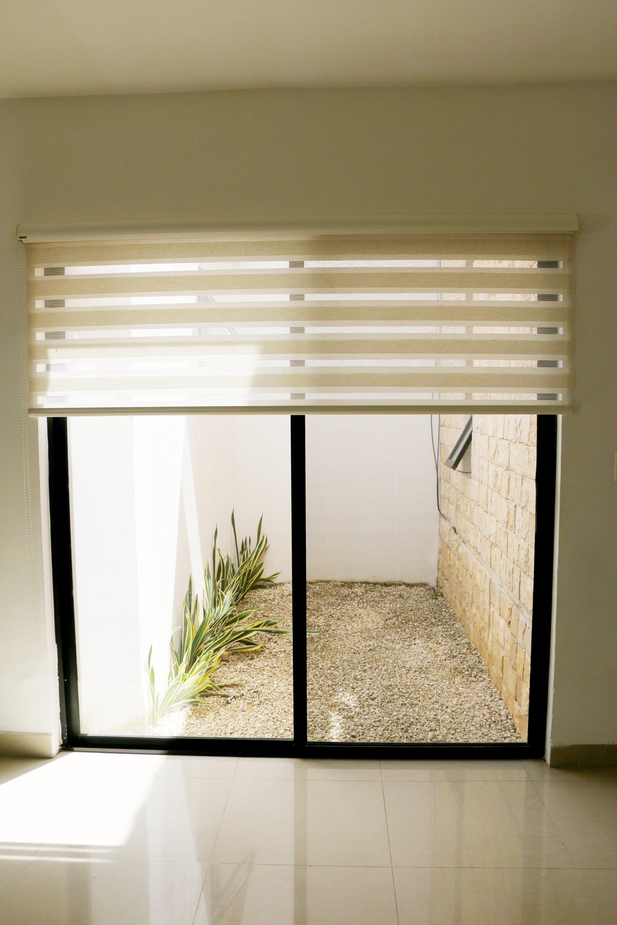 La sala cuenta con aire acondicionado, mueble empotrado para tv, persianas día y noche.