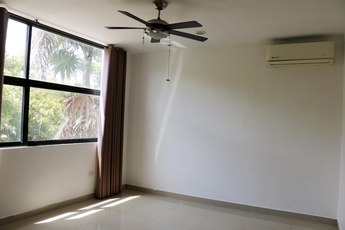 Las recámaras secundarias cuentan con aire acondicionado, ventilador, cortinas black out y closet. Comparten baño y una de ellas tiene balcón.