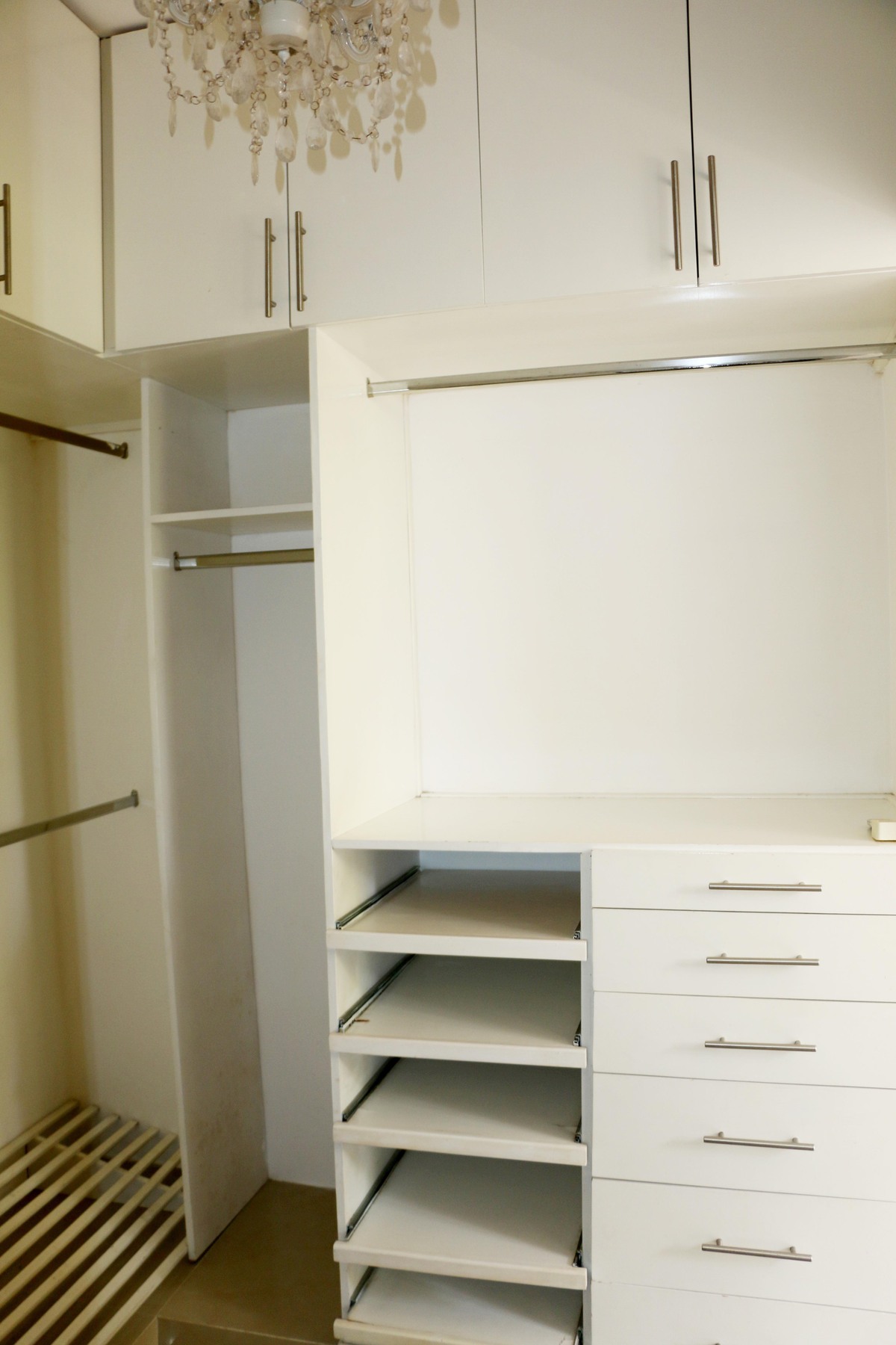 The living room has air conditioning, built-in furniture for TV, day and night blinds.