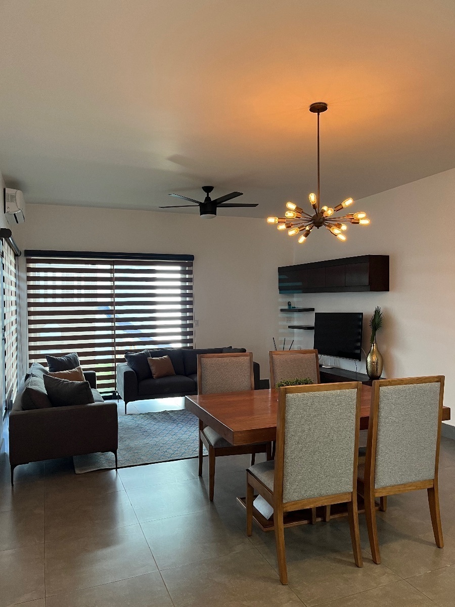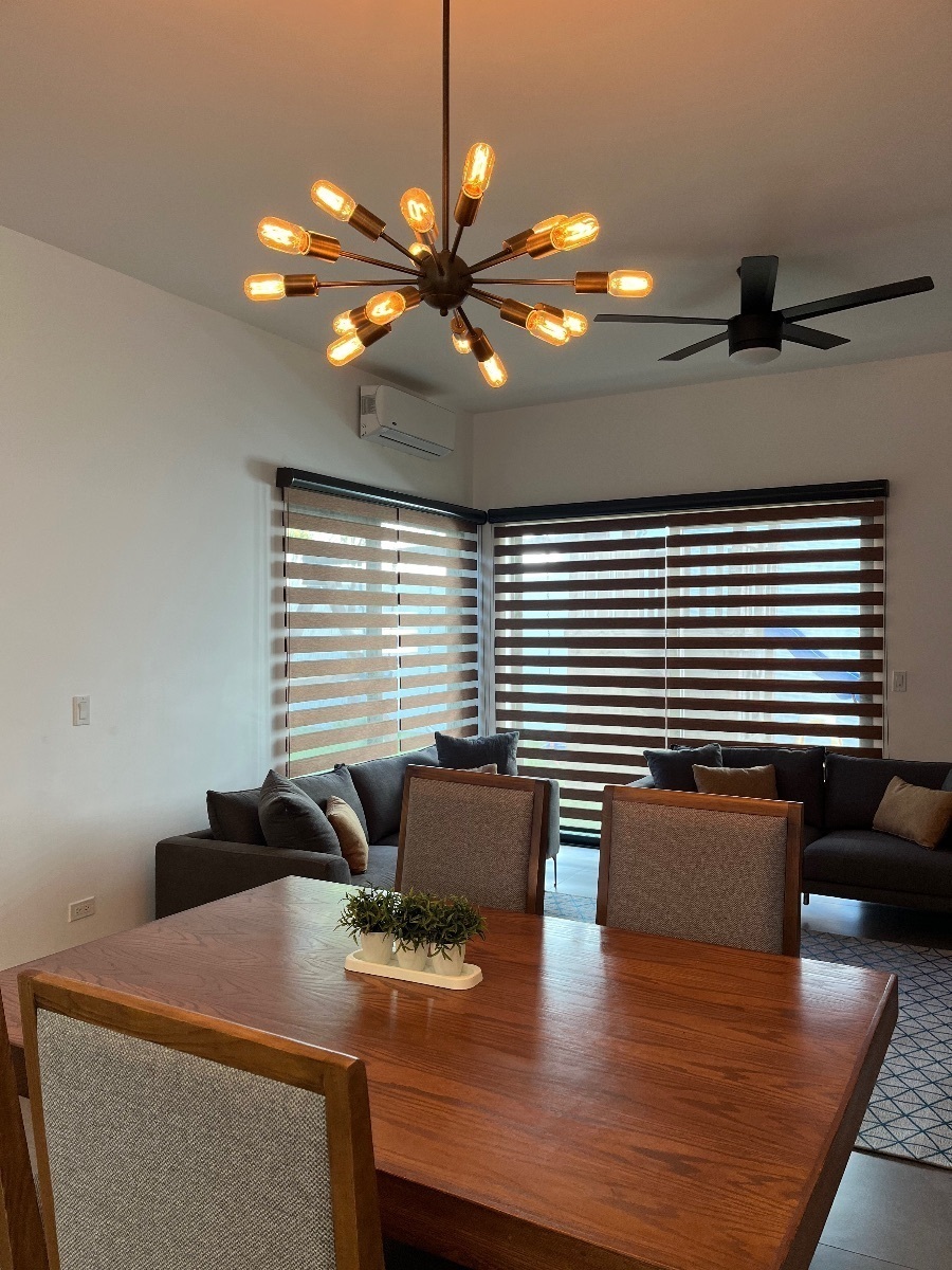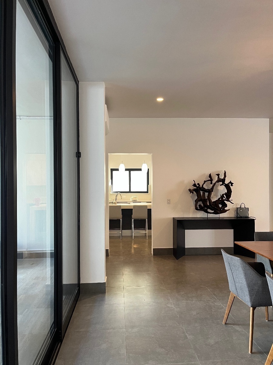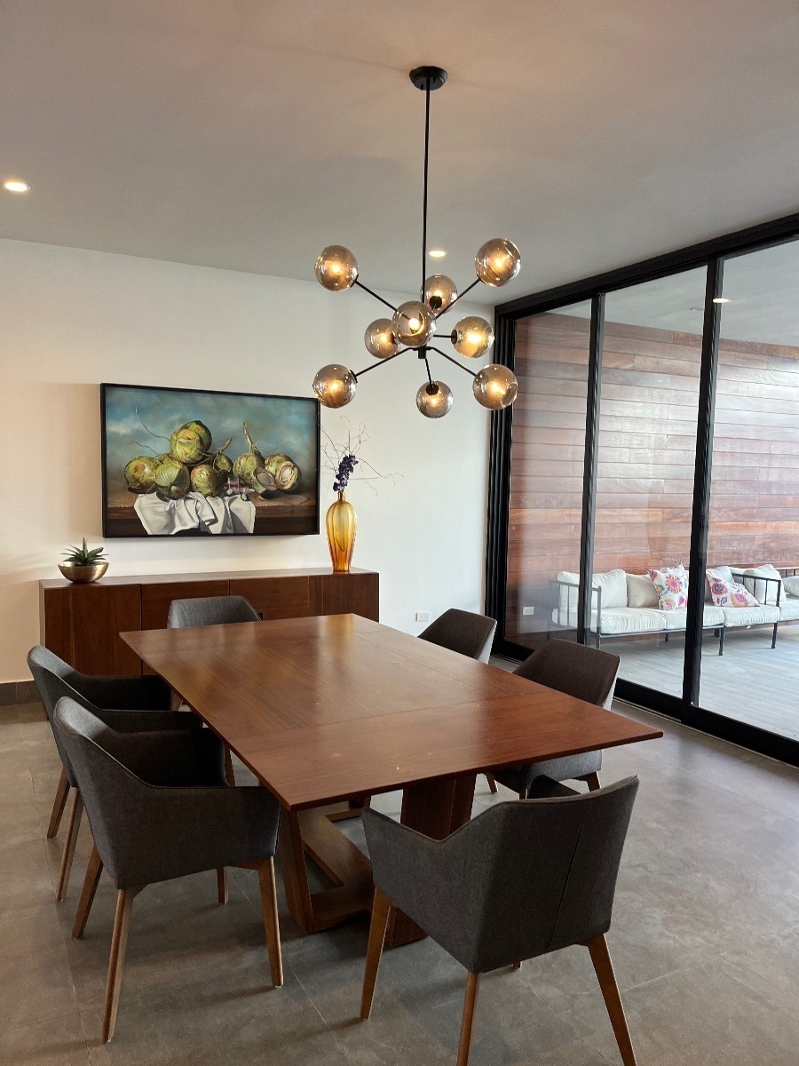 • Cuenta con puerta corrediza para salir a la terraza al desayunador.