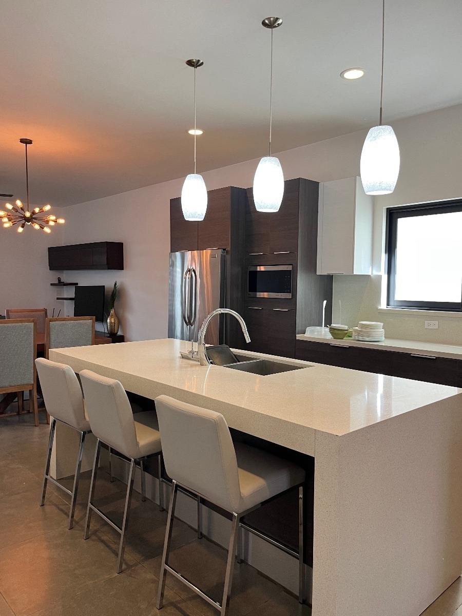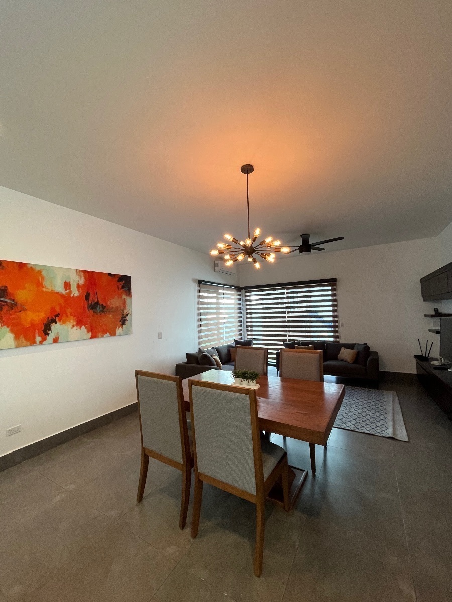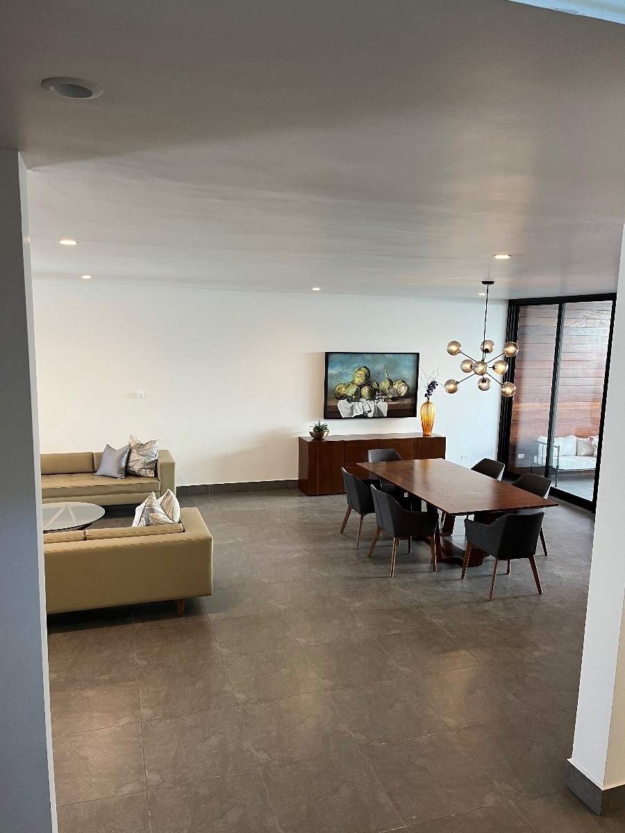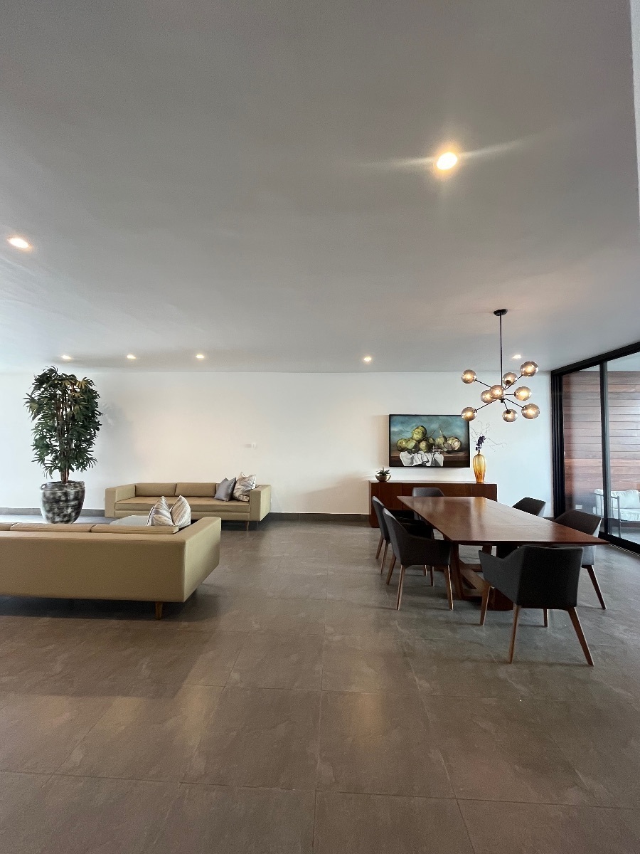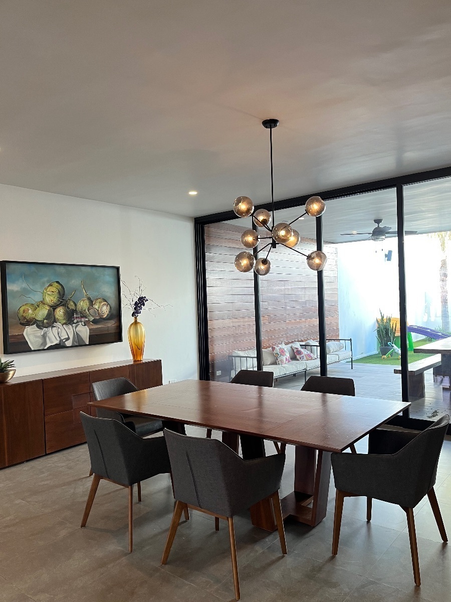 • Cuenta con puerta corrediza para salir a la terraza al desayunador.