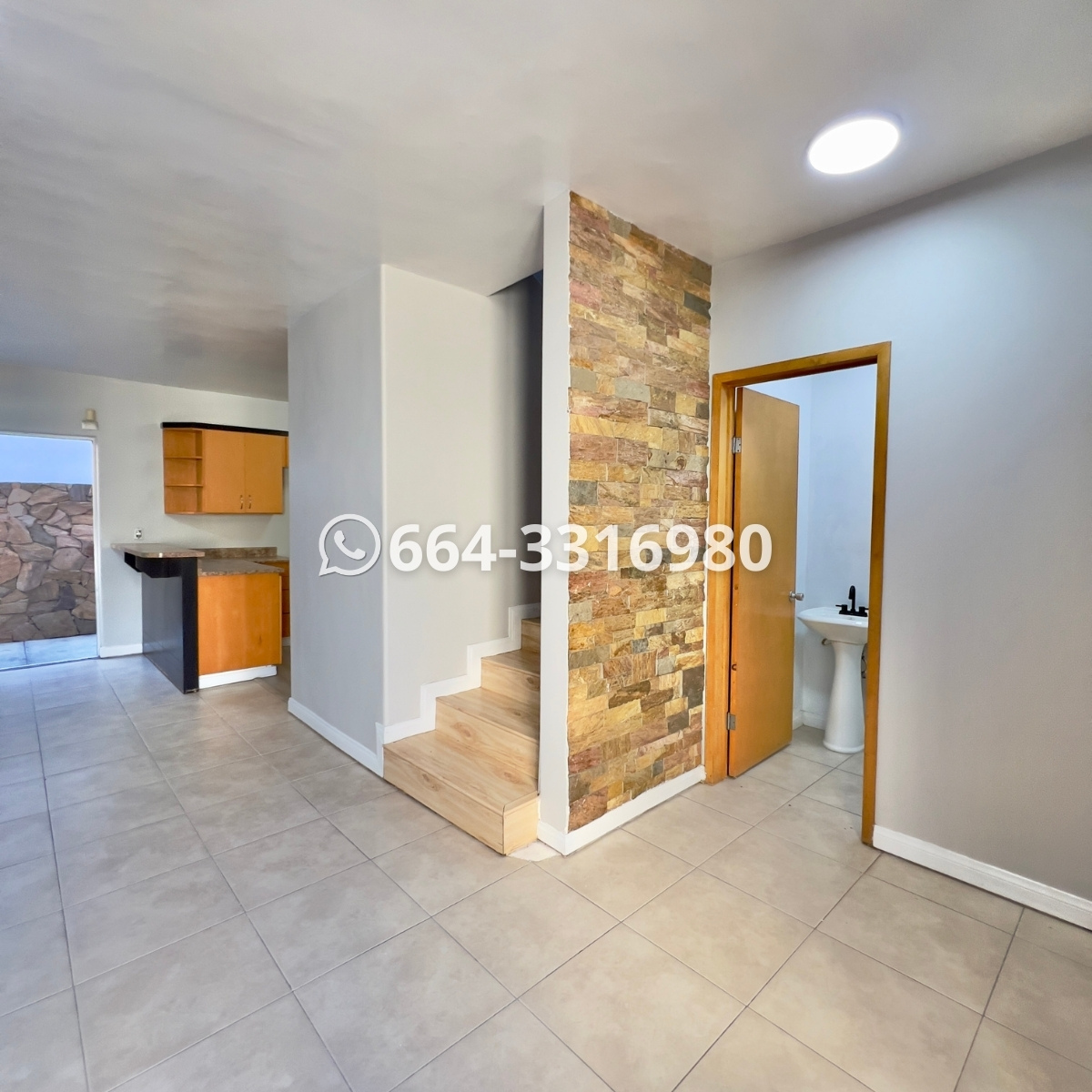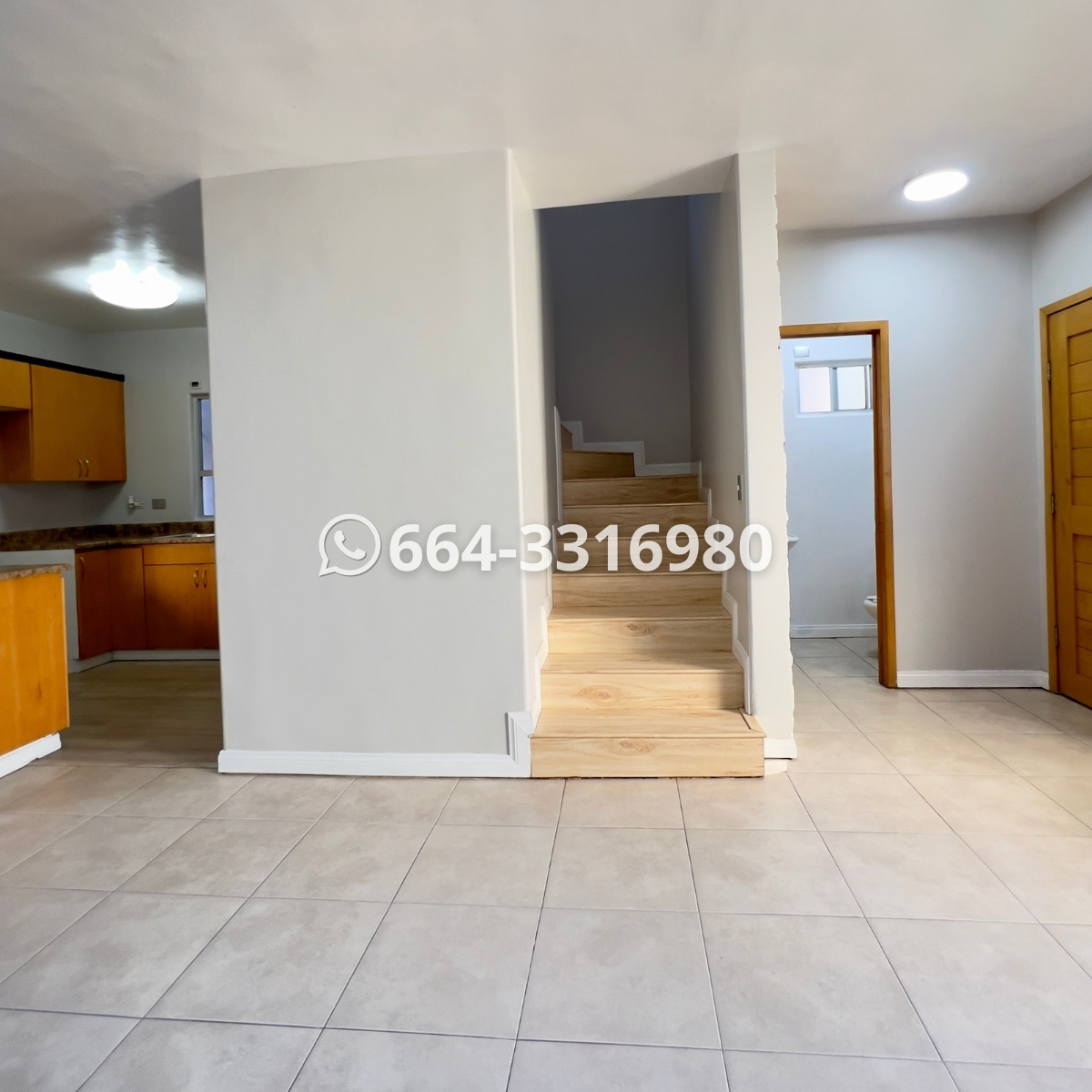 Primer nivel: sala, comedor, cocina integral, 1 cuarto de lavado, medio baño, pequeño patio trasero, pasillo de servicio, 2 estacionamientos.