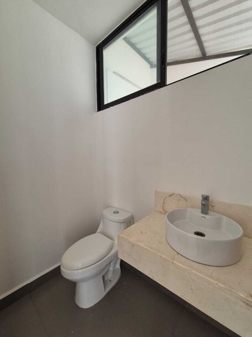 On the upper floor, the master bedroom has a spacious walk-in closet, bathroom with tempered glass partition, privacy door for the toilet, double-height ceiling, and window with a view of the terrace. The secondary bedroom has a window with a view of the private area, full bathroom with walk-in closet.