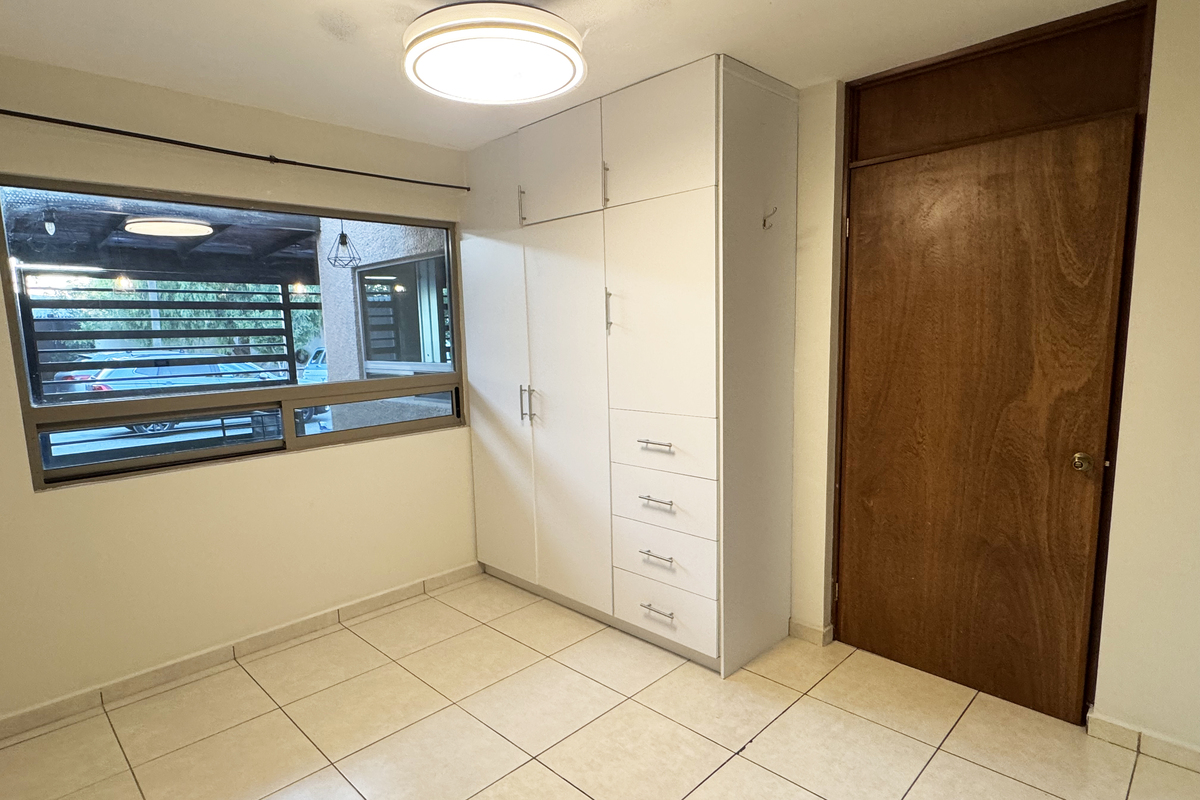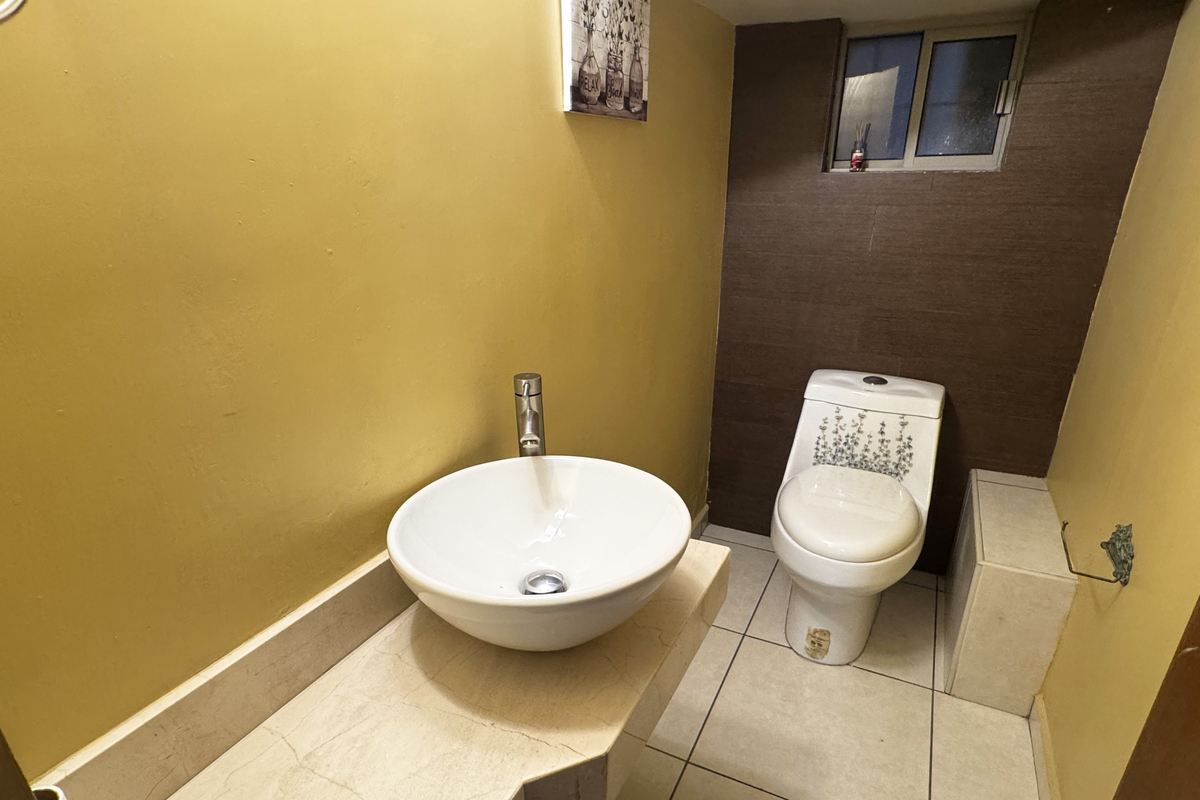 Planta Baja: Portón de acceso, puerta de seguridad, sala, comedor, cocina equipada con cocineta de madera, estufa, refrigerador, lavandería cerrada, patio con asador, medio baño de visitas, recámara con closet y baño completo.