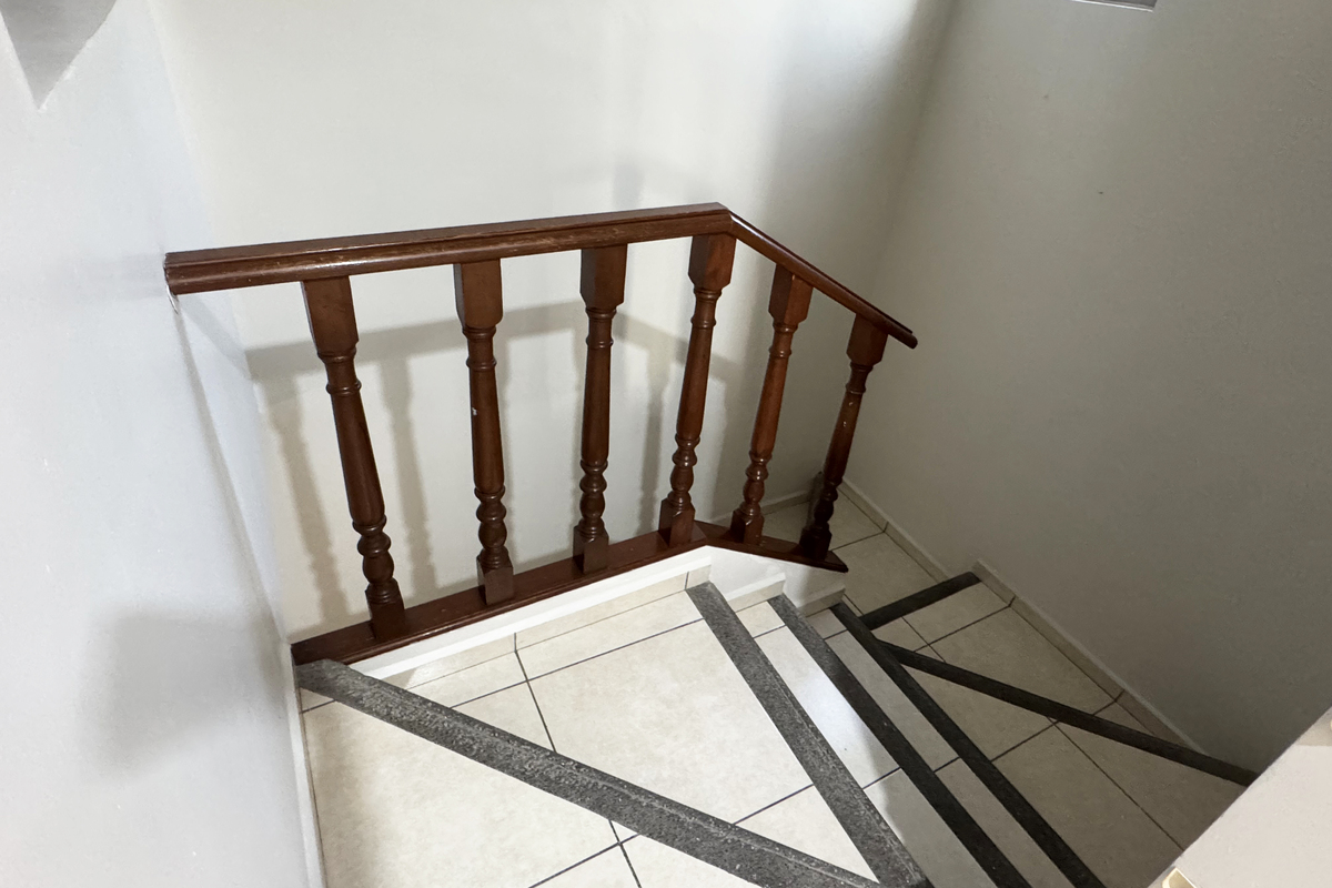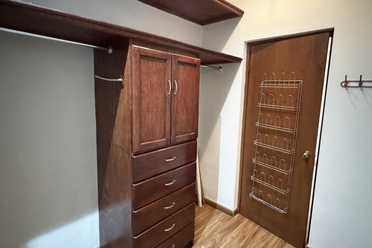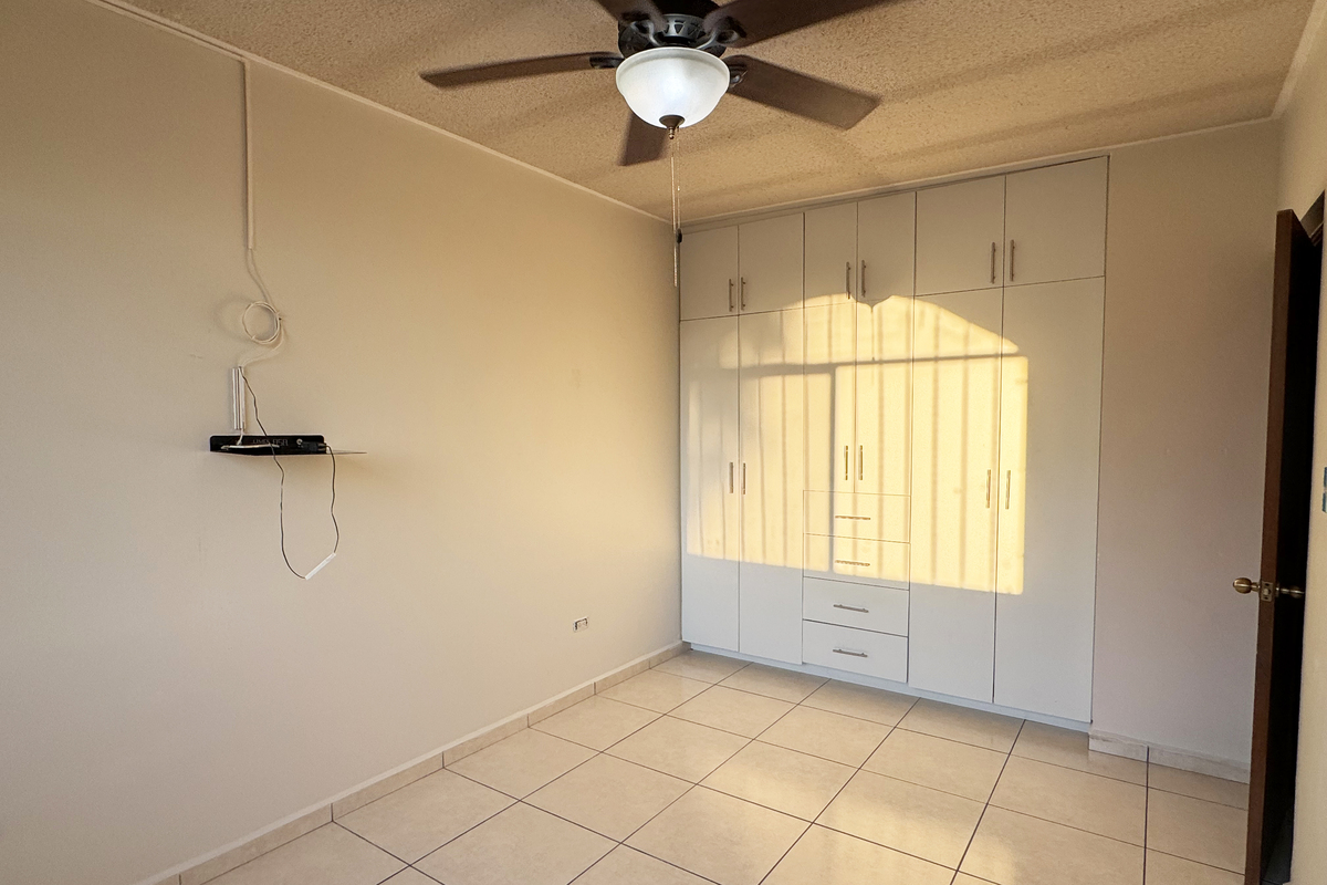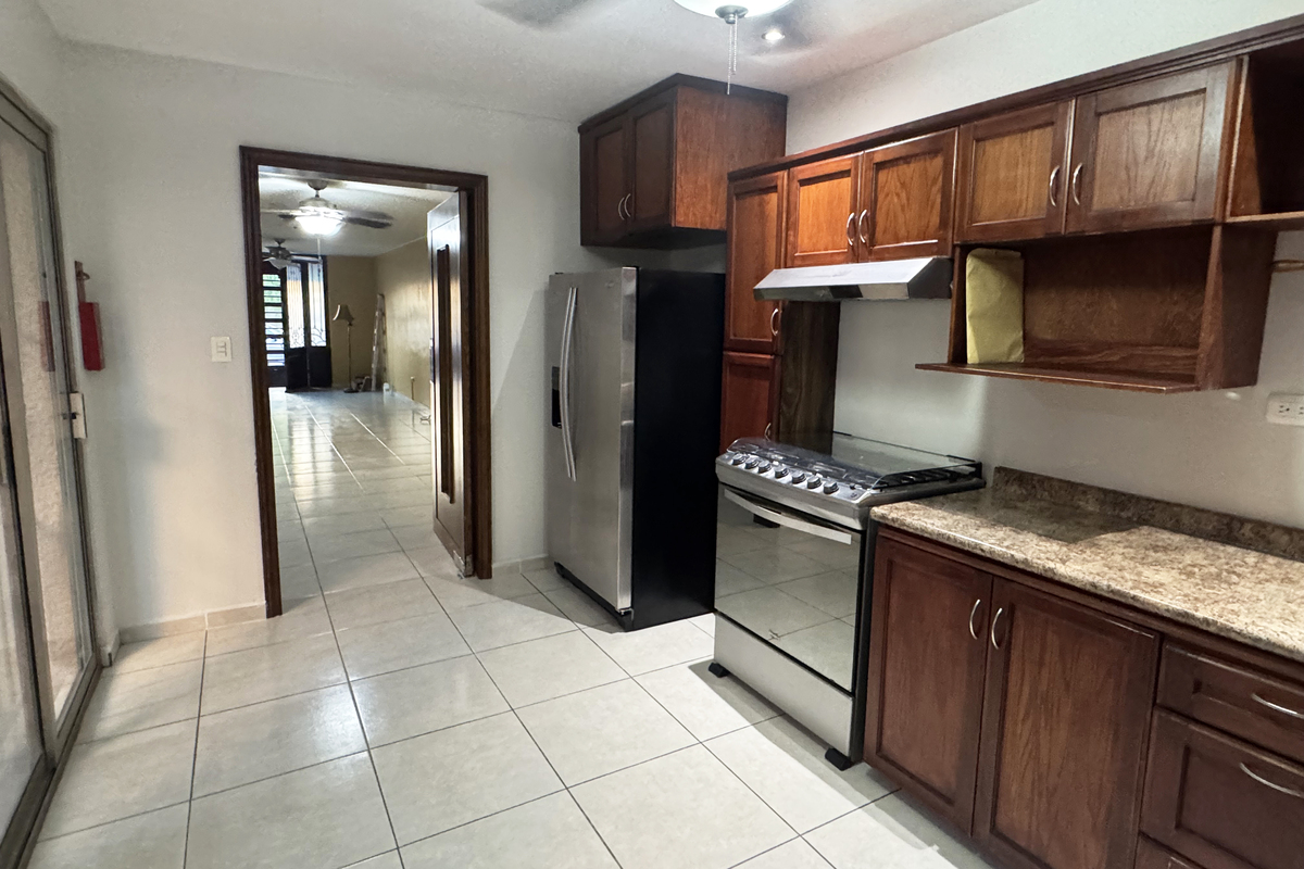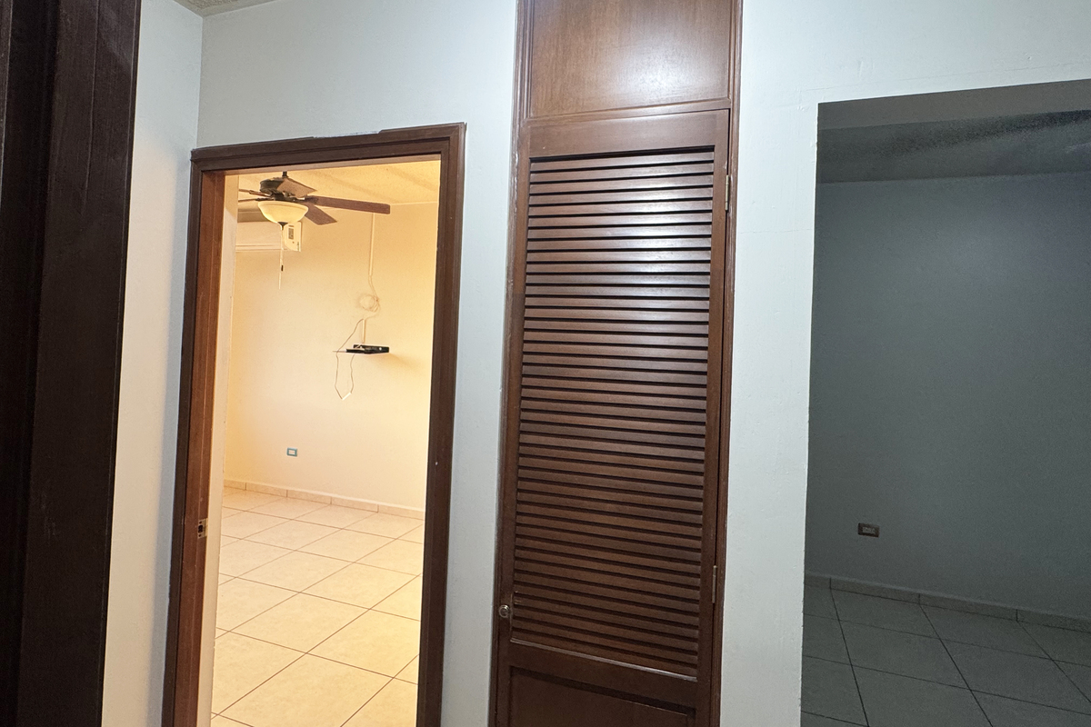 Upper Floor: 3 bedrooms, the main one with full bathroom and walk-in closet, the secondary ones share a full bathroom and each has a closet, TV room and closet.